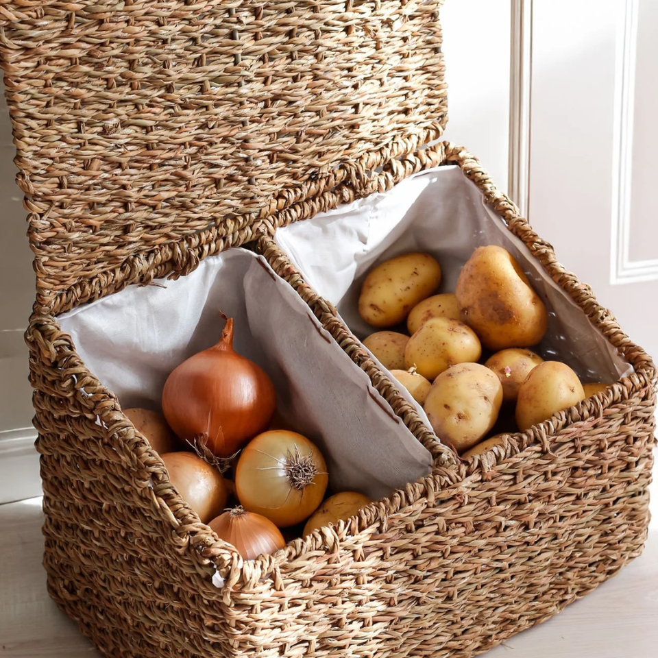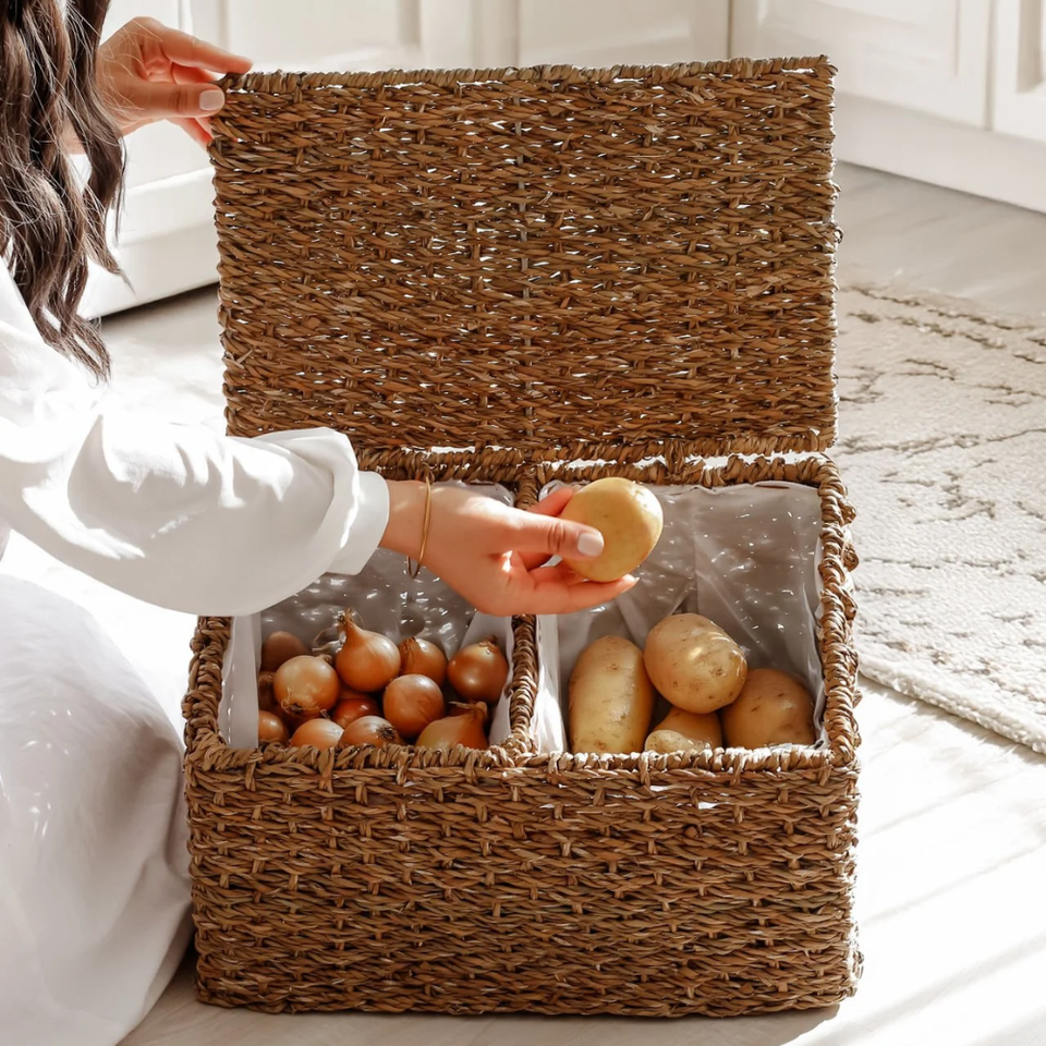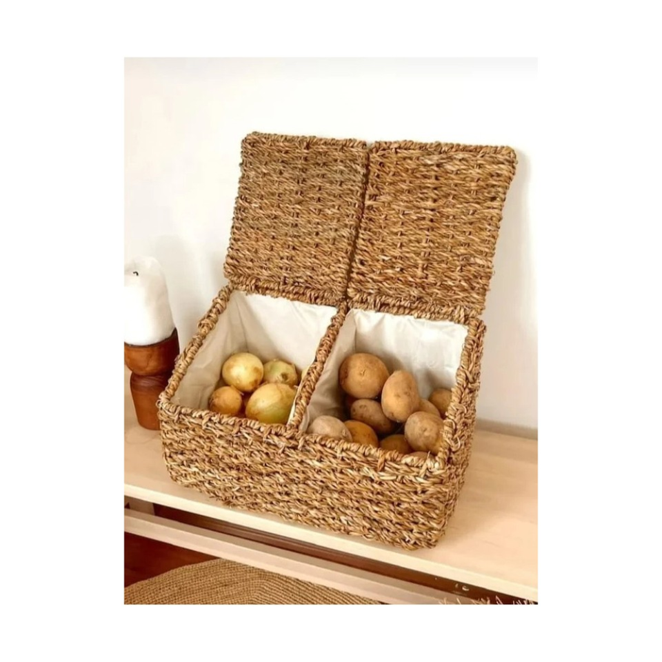 ตะกร้าอเนกประสงค์2ช่องเป็นมิตรกับสิ่งแวดล้อมพร้อมฝาปิดสำหรับการจัดระเบียบบ้านและห้องครัวจากเวียดนาม