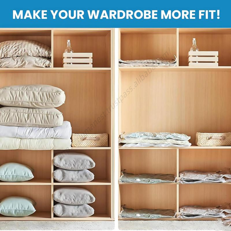 ชุดถุงเก็บของสุญญากาศแบบประหยัดพื้นที่ เป็นมิตรกับสิ่งแวดล้อม สำหรับเสื้อผ้า พร้อมปั๊มลม ขายส่ง