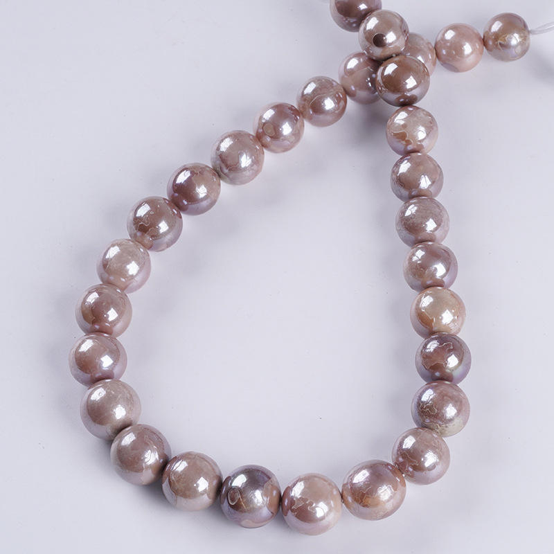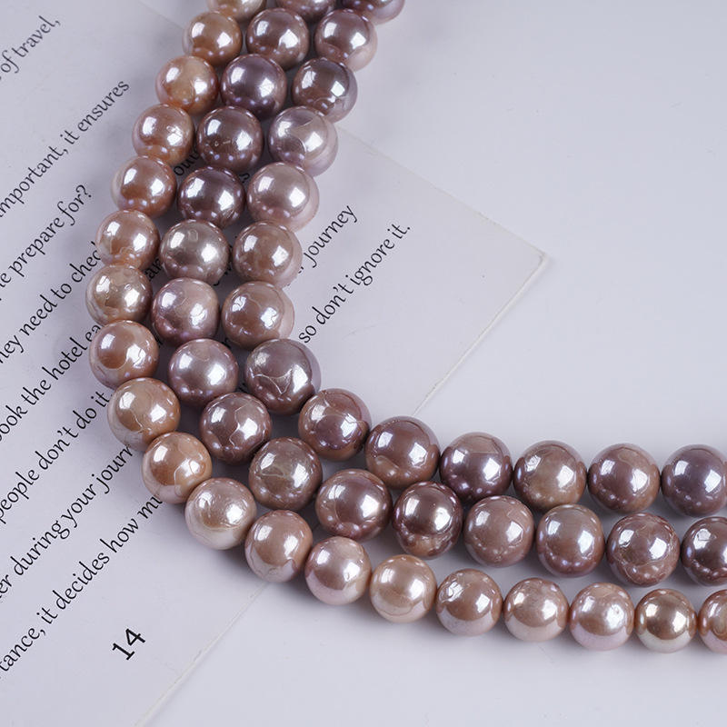 ลูกปัดมุกน้ำจืดสีม่วงธรรมชาติเคลือบน้ำมันเงา ขนาด 12-17 มม. สำหรับทำสร้อยคอแบบขายส่ง