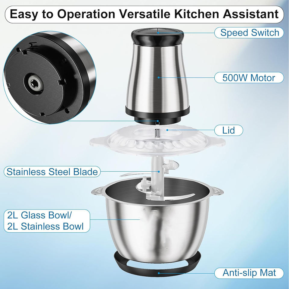 เครื่องบดเนื้อไฟฟ้าขนาดเล็กแบบขายส่ง ความจุ 2L-5L ทำจากสแตนเลส สำหรับใช้ในครัวเรือนและรถบ้าน