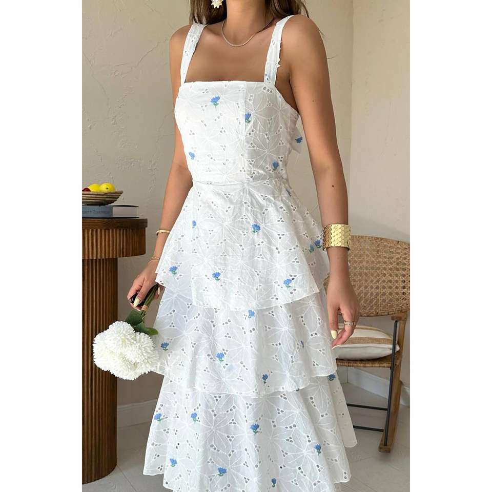 เดรสสีน้ำเงินหรูหราแบบขายส่ง ความยาวระดับเข่า คอเหลี่ยม แต่งซิป ดีไซน์เว้า ไซส์ XS สไตล์ลำลอง ODM