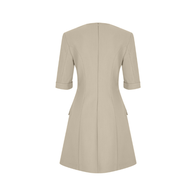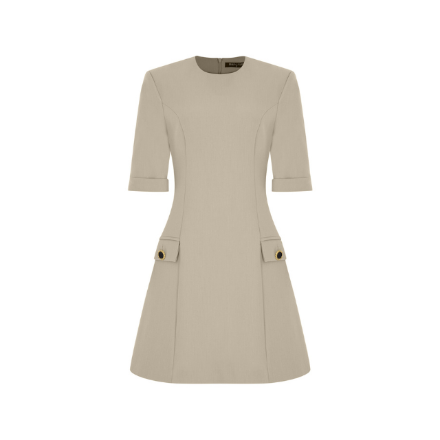 เดรสสีเอครูแบบมีดีไซน์หรูหรา ความยาวปานกลาง แขน 3/4 สำหรับผู้หญิง แฟชั่นฤดูหนาว เหมาะสำหรับใส่ทำงานในออฟฟิศและชุดลำลอง รับผลิตแบบ OEM ODM