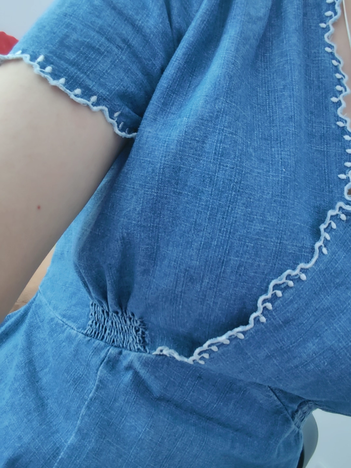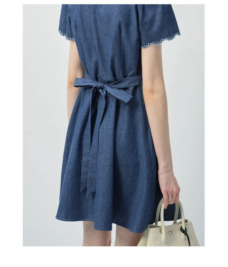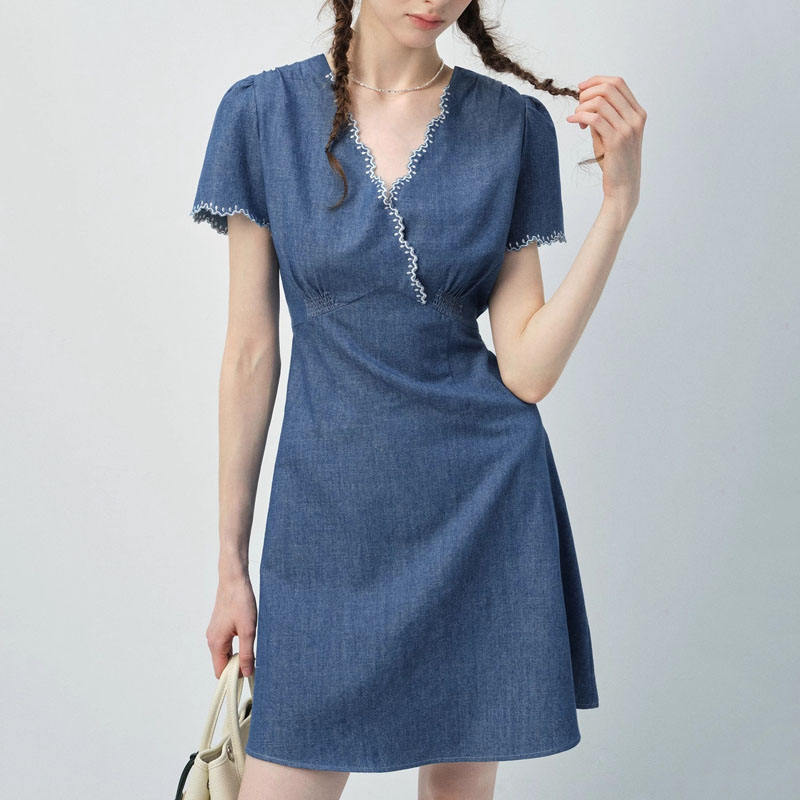 เดรสยีนส์สั้นคอวีปักลายสำหรับผู้หญิงหรูหรา