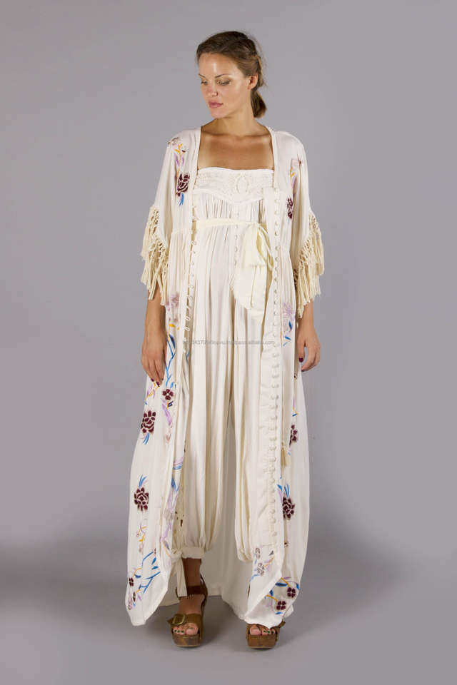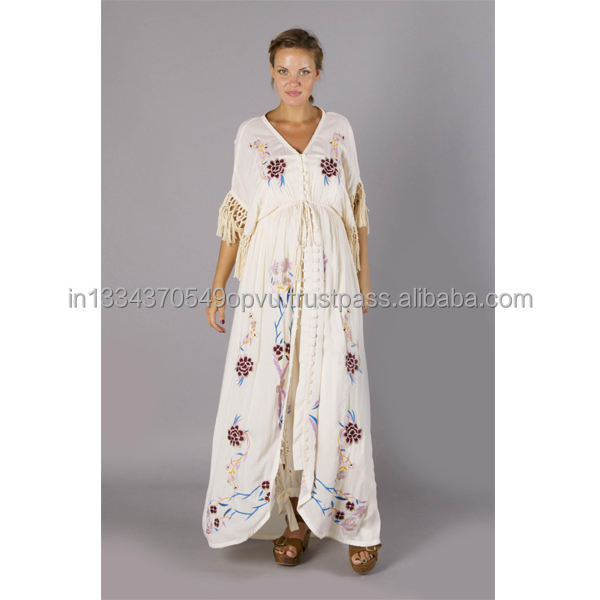 ชุดแม็กซี่เดรสปักลายดอกไม้สำหรับคุณแม่ชุดเดรสสไตล์โบฮีเมียนกระดุมแบบมีเชือกผูกเอว