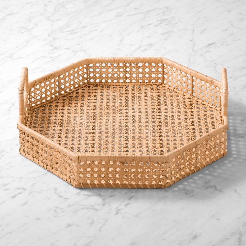 ถาดเสิร์ฟทรงแปดเหลี่ยมหวายสานอย่างดี ดีไซน์สวยงาม ใช้เป็นถาดโชว์หรือจัดระเบียบของตกแต่งบ้าน