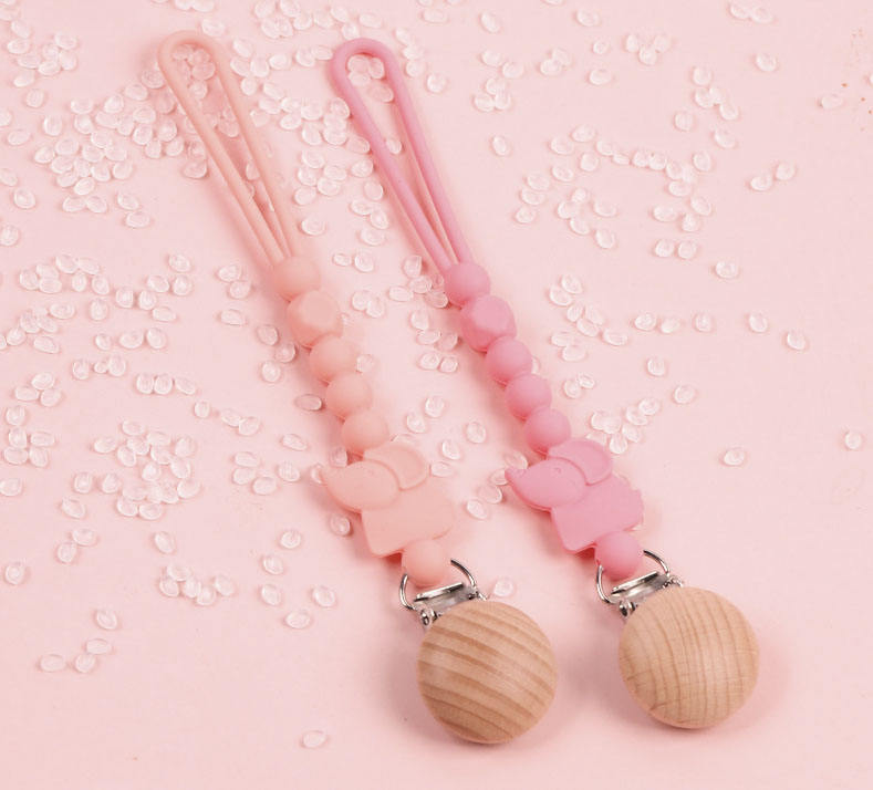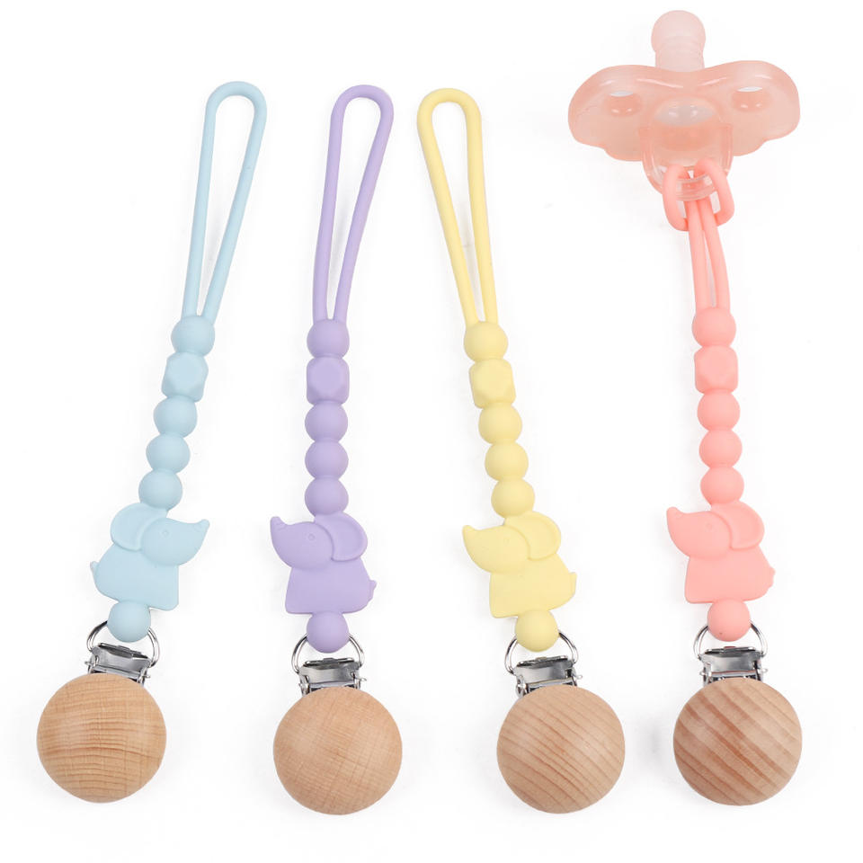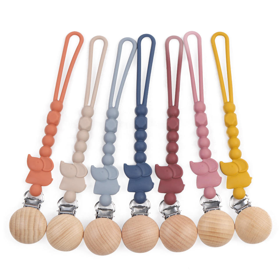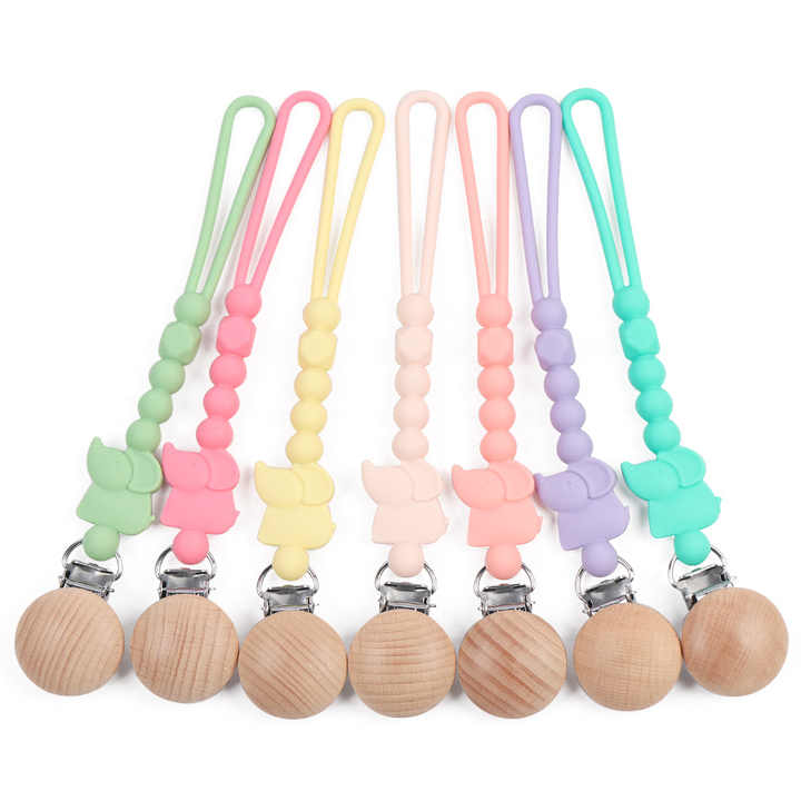 คลิปหนีบจุกนมปลอมรูปช้างทำจากซิลิโคนลูกปัดไม้สำหรับเด็กทารกและเด็กผู้หญิง