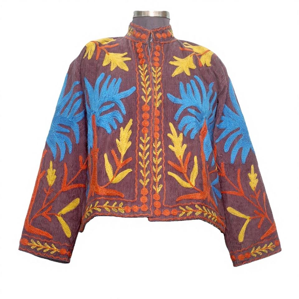 เสื้อแจ็คเก็ตคอตทริสปักลายขายส่ง เสื้อโค้ทแบบยูนิเซ็กซ์สำหรับฤดูใบไม้ร่วง เสื้อแจ็คเก็ตคอตทริสสั้นสไตล์ชาติพันธุ์ เสื้อแจ็คเก็ตปักลายอย่างดี