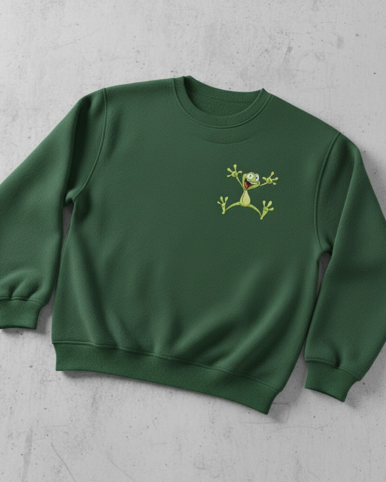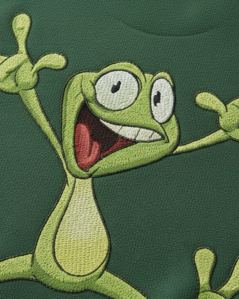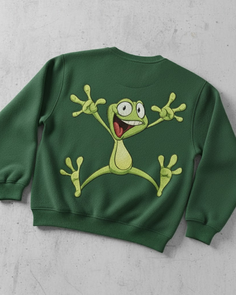 เสื้อสเวตเตอร์ปักลายการ์ตูนกบแบบสวมหัวแบบลำลองสำหรับผู้ซื้อจำนวนมากดีไซน์ตามสั่ง