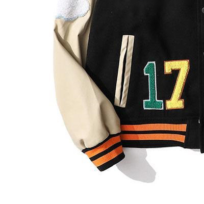 Wholesale Premium Black Ivory Men's Varsity Jacket Custom Embroidered Chenille Patches Stand Collar Letterman Coach Jacket