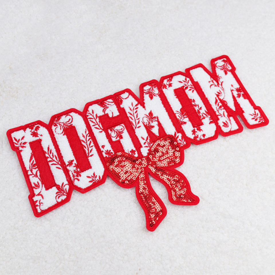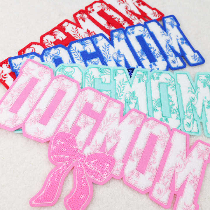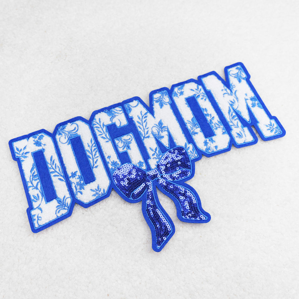 แพทช์ปักลายแบบรีดติดเสื้อ ขายส่ง แพทช์ตัวอักษรเชนิลล์แบบกำหนดเอง ลาย Dog Mom สำหรับเสื้อ
