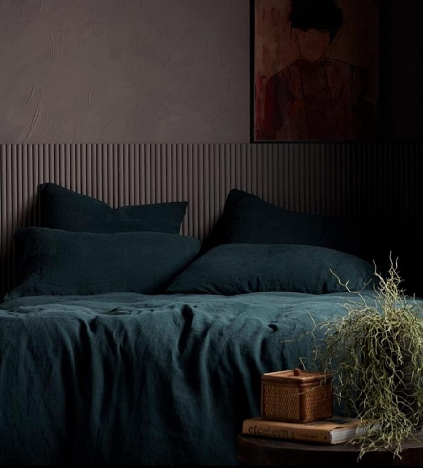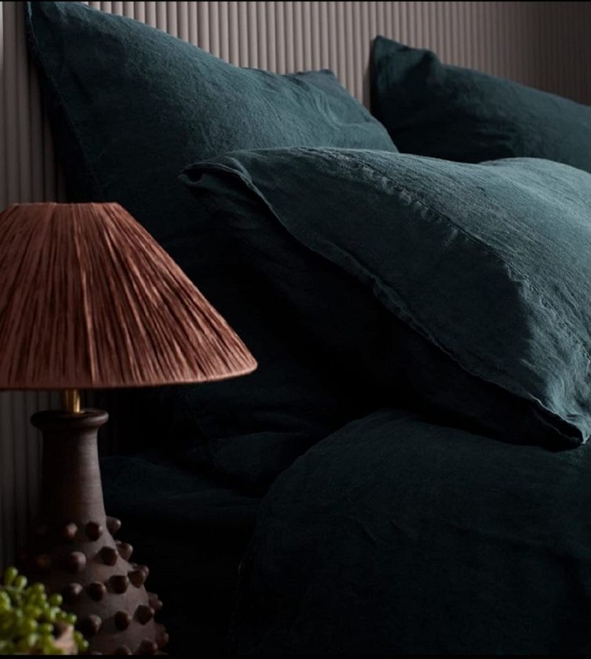 ชุดปลอกผ้านวมลินิน100% เขียวมรกตชุดผ้าปูที่นอนแบบ200TC สำหรับควีนคิงส์มีทุกสีให้เลือก