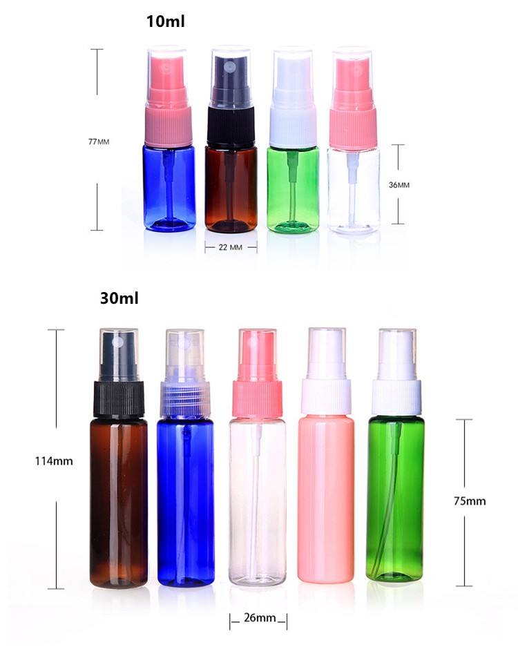 Product Name:10ml 30ml Round Shape Pink Clear Green Blue Amber Plastic Spray Bottle