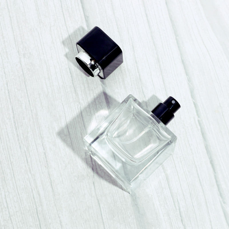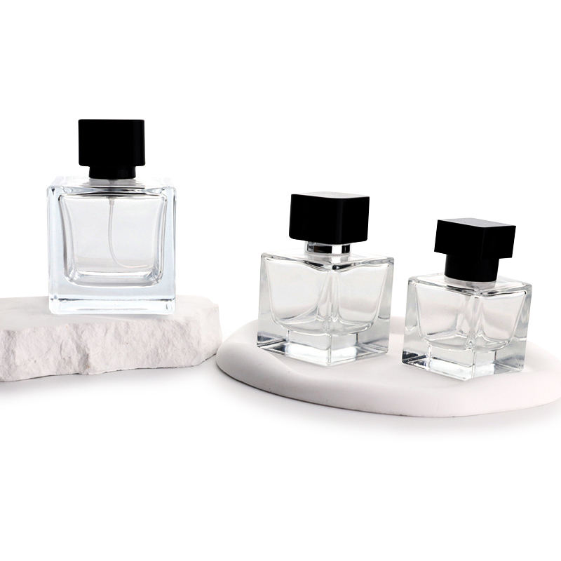 ขวดน้ำหอมแก้วใสทรงเหลี่ยมหรูหรา ขนาด 30 มล. 50 มล. 100 มล. สำหรับขายส่ง แบบเติมได้