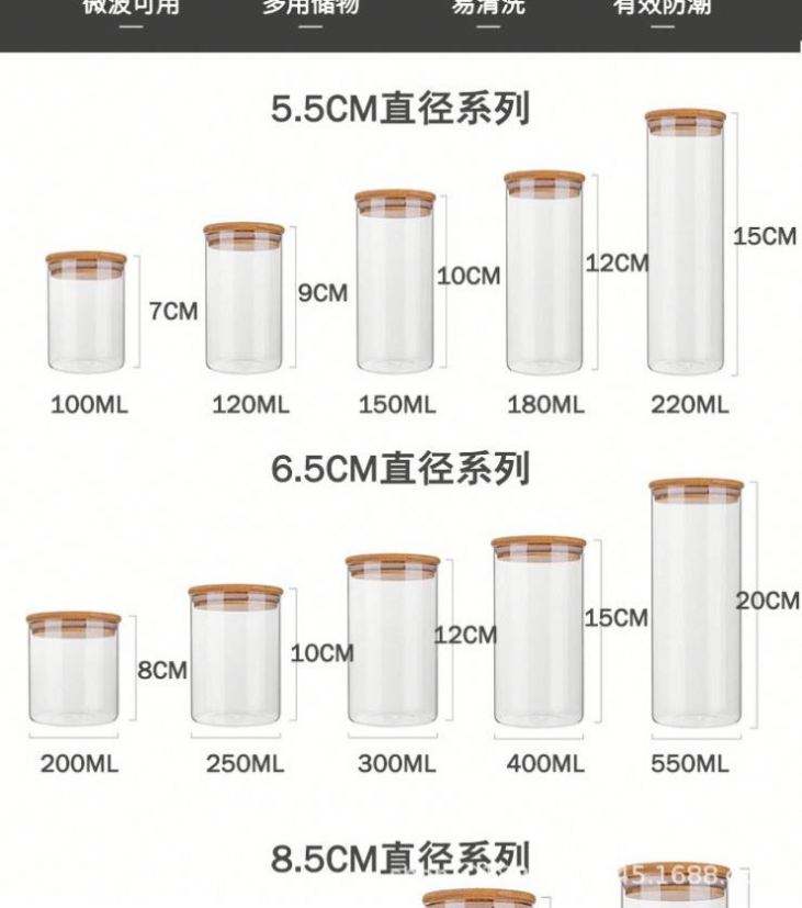 โหลแก้วใส่เทียนใสขนาด7ออนซ์200มล. ภาชนะบรรจุพร้อมฝาไม้ไผ่สำหรับทำเทียนหอม