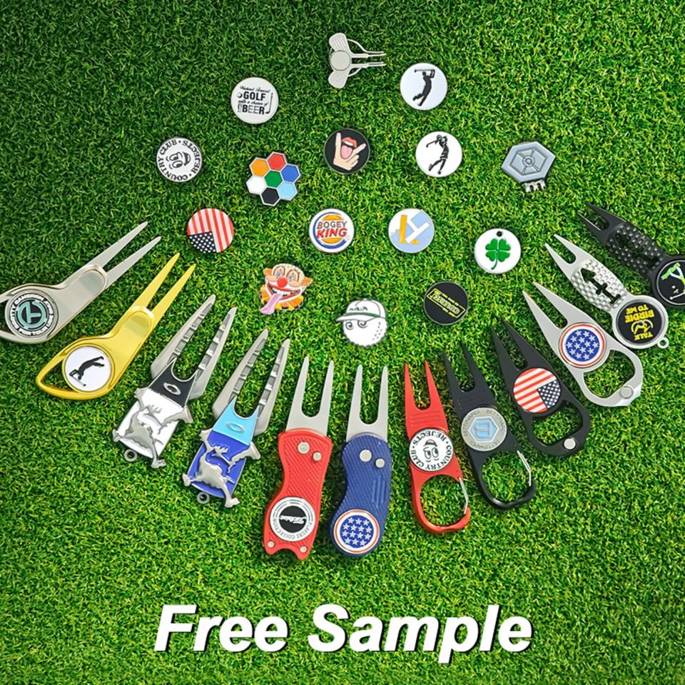 ชุดอุปกรณ์ซ่อมดิโวทเคลือบเงาแบบขายส่ง อุปกรณ์เสริมหมวกโลหะอื่นๆ คลิปแม่เหล็กติดหมวกแบบเปล่า ตัวทำเครื่องหมายลูกกอล์ฟแบบกำหนดเอง โลหะผสมสังกะสี
