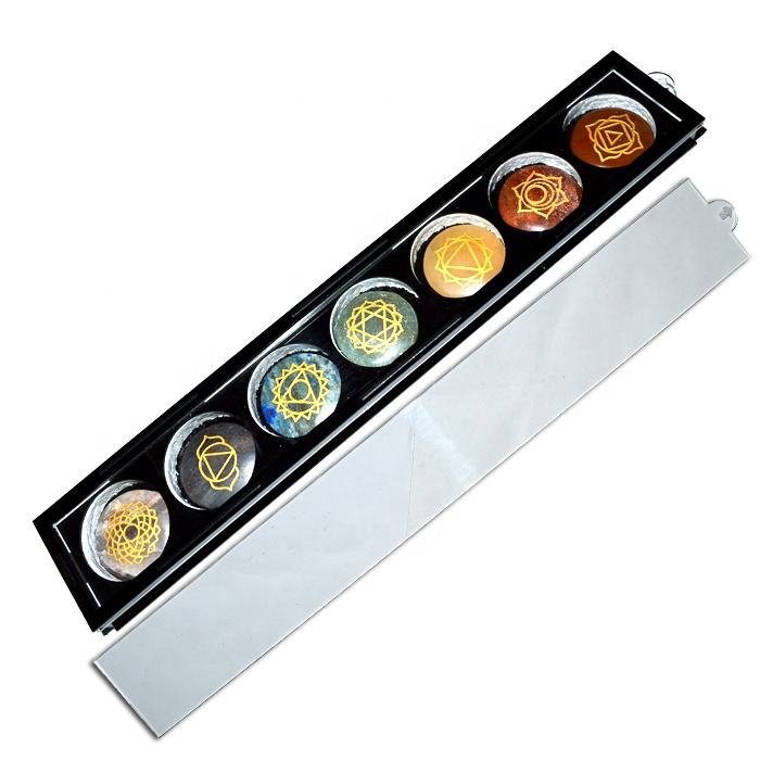 ชุดจักระแผ่นดิสก์เซเลไนท์แกะสลักงานฝีมือหินกึ่งสังเคราะห์สำหรับการทำสมาธิ