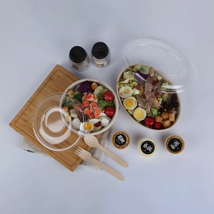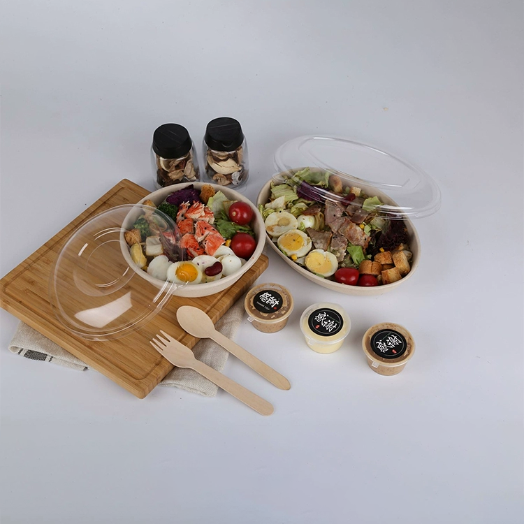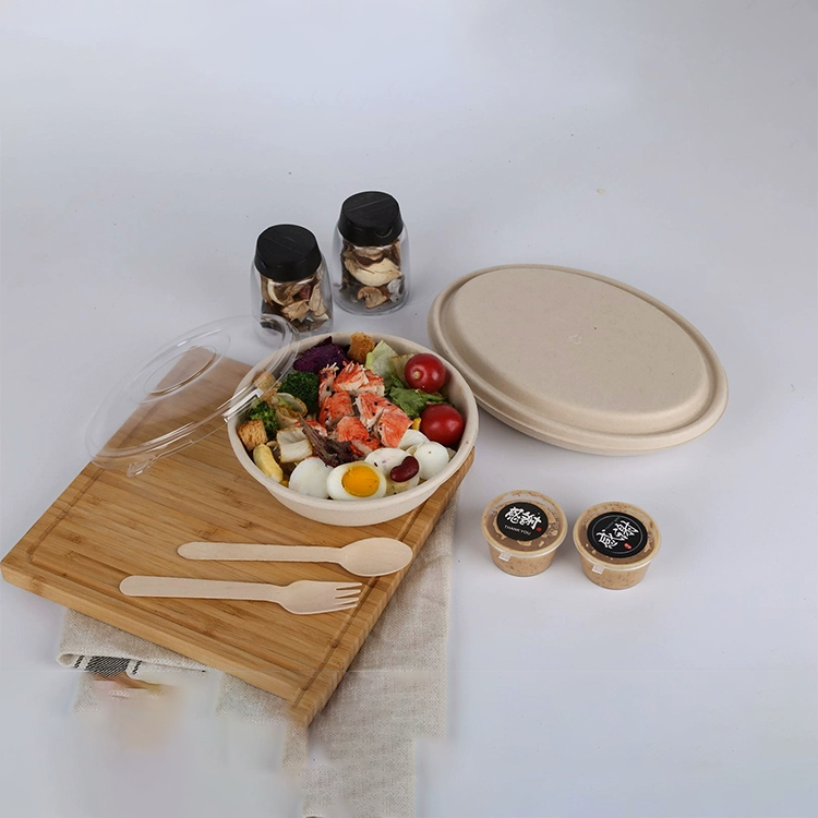 ชามสลัดแบบใช้แล้วทิ้งที่ทำจากกระดาษและชานอ้อยแบบย่อยสลายได้เป็นมิตรต่อสิ่งแวดล้อม