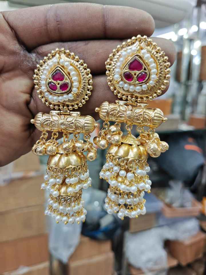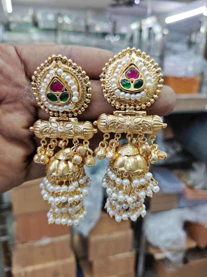 ต่างหูแบบห้อยประดับมุกชุบทอง 24K ดีไซน์ใหม่สไตล์ชาติพันธุ์สีทองเขียวแบบชานด์บาลี คัชเมียร์ จุมก้า สำหรับผู้หญิงและเด็กผู้หญิง ขายส่ง
