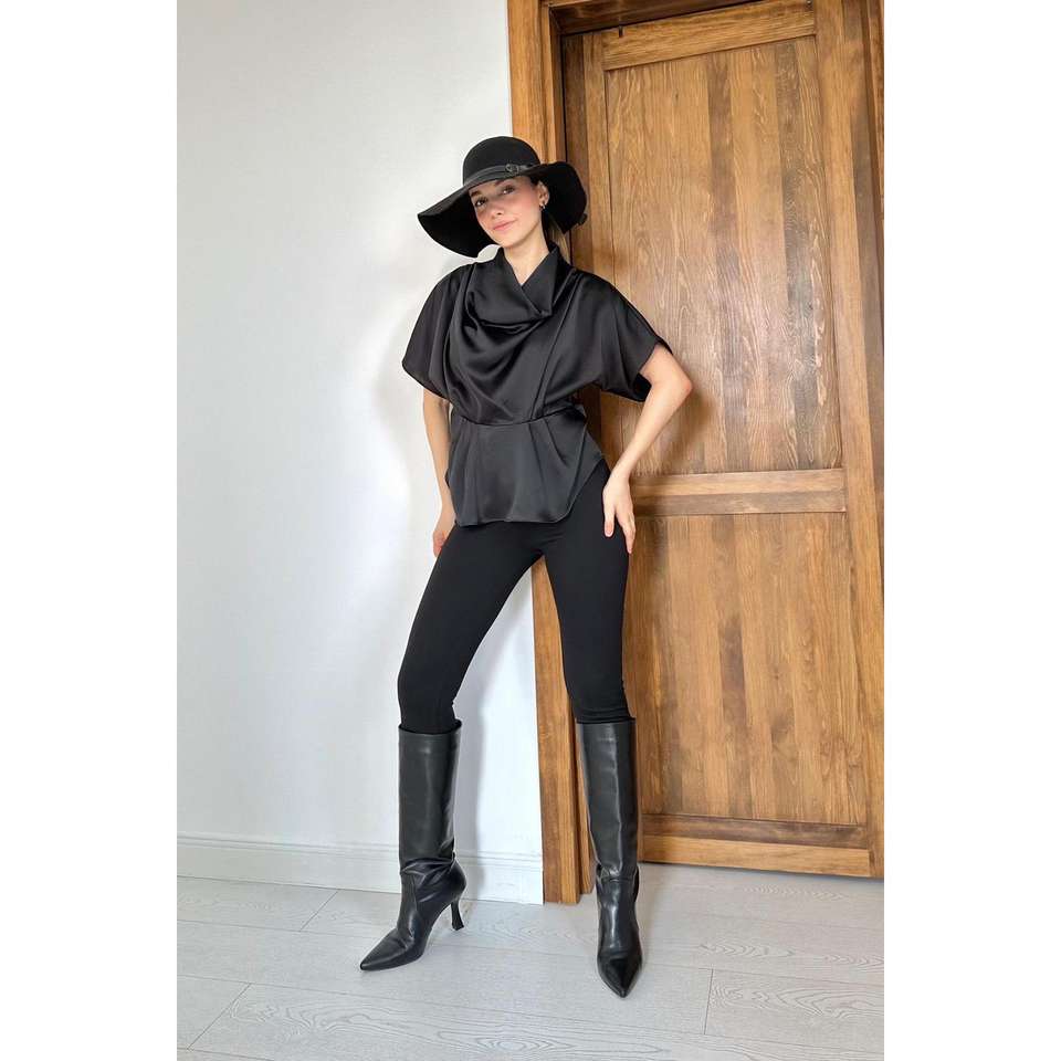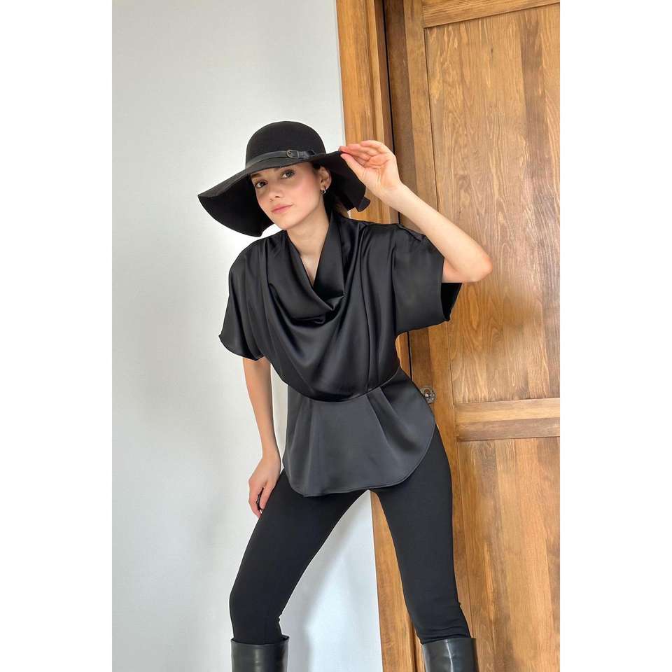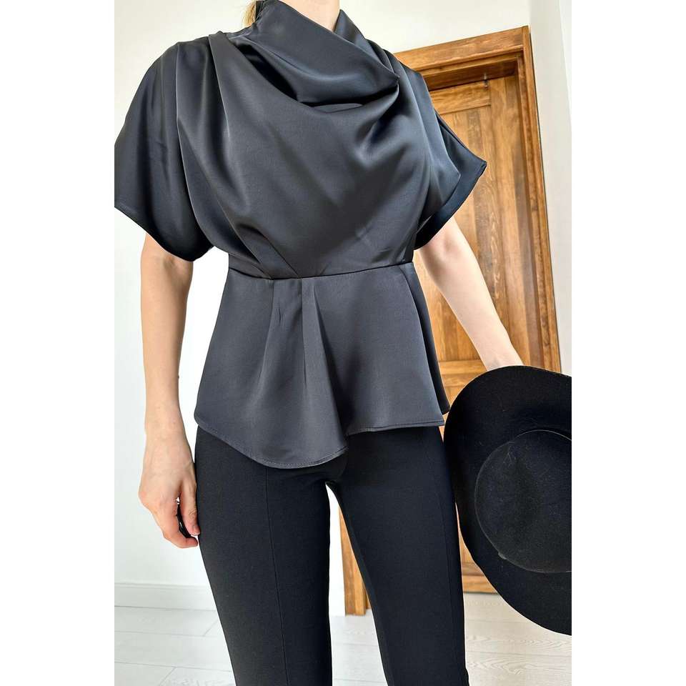 เสื้อผ้าส่งออกยุโรป เสื้อเบลาส์คอวีสีดำ
