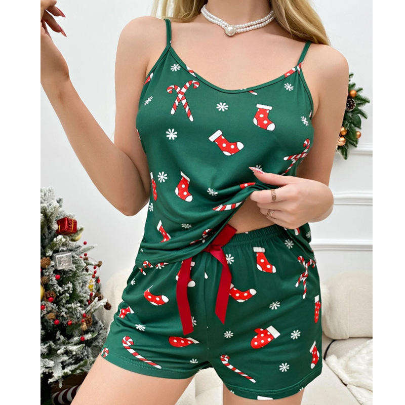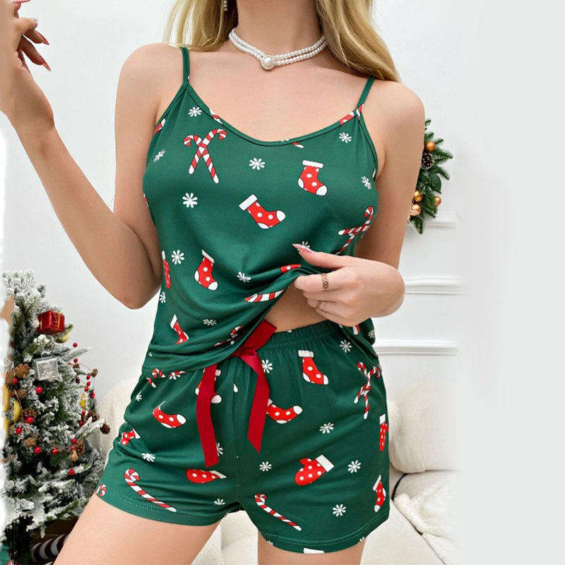 ชุดสองชิ้นชุดนอนสตรีสองชิ้นแบบลำลองสไตล์ยุโรปและอเมริกาสำหรับฤดูร้อน