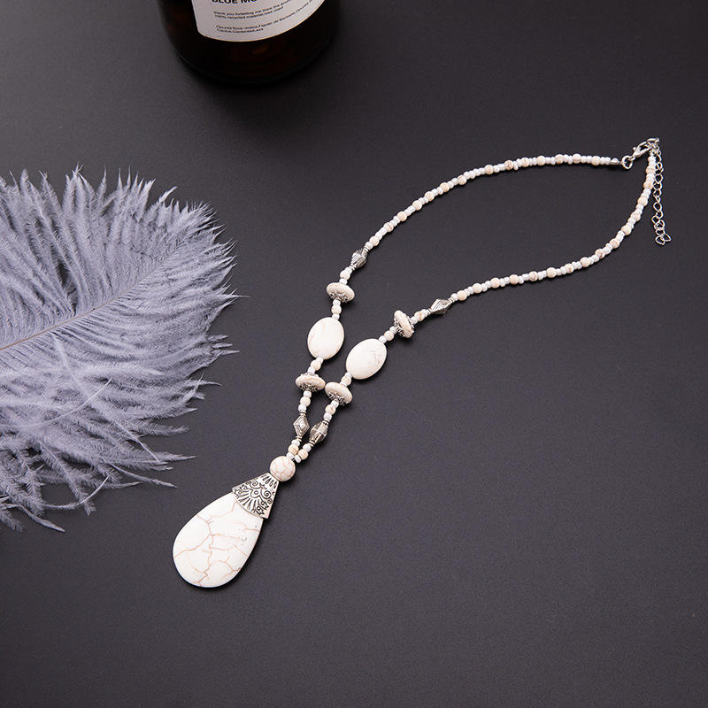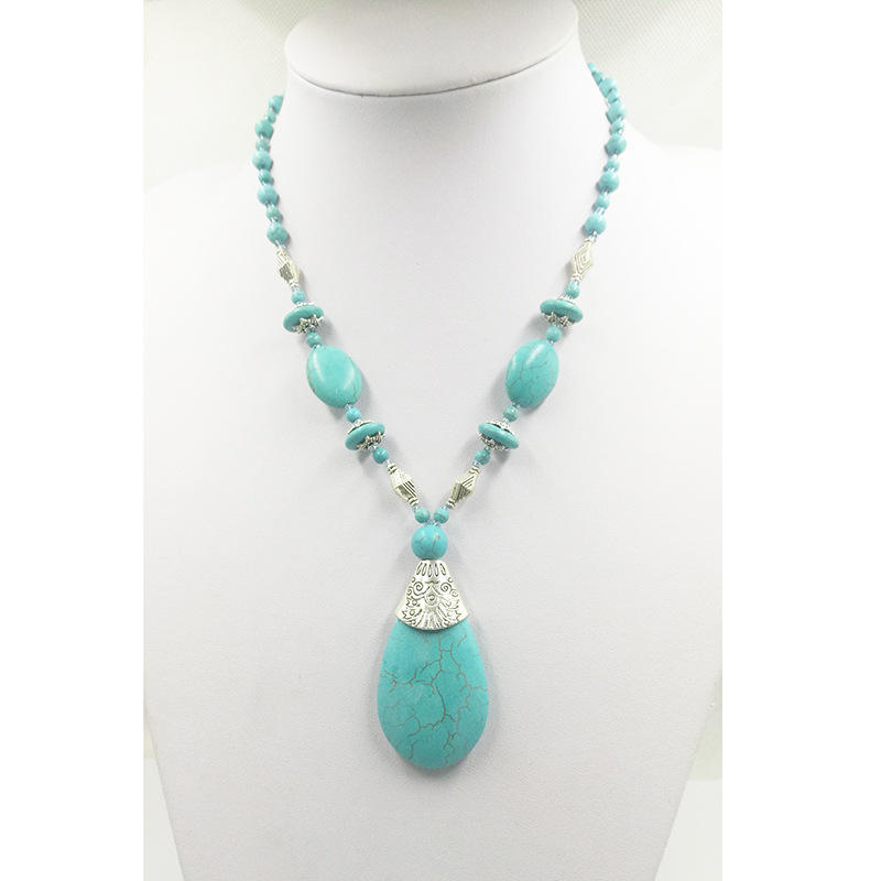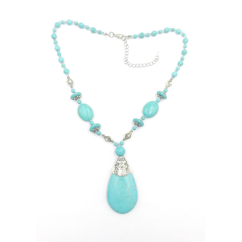 ชุดต่างหูและสร้อยข้อมือแบบโซ่ลายคลื่นน้ำชุบเงินประดับด้วยหินเทอร์ควอยซ์สไตล์โบฮีเมียนวินเทจแฟชั่นสุดอลังการสำหรับผู้หญิง ขายส่ง