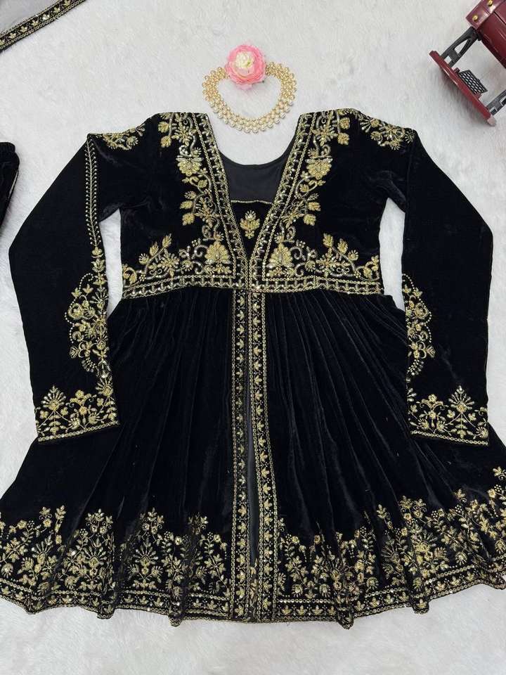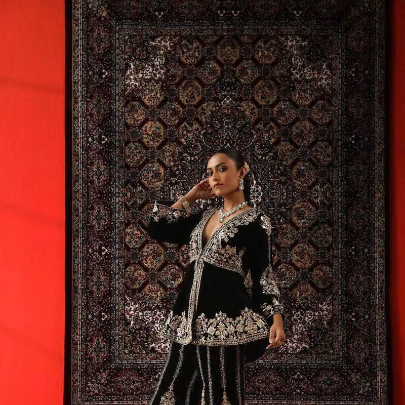 ชื่อผลิตภัณฑ์:เสื้อปักลายลำดับผ้ากำมะหยี่วิสคอสจาก Palazzo และ Dupatta