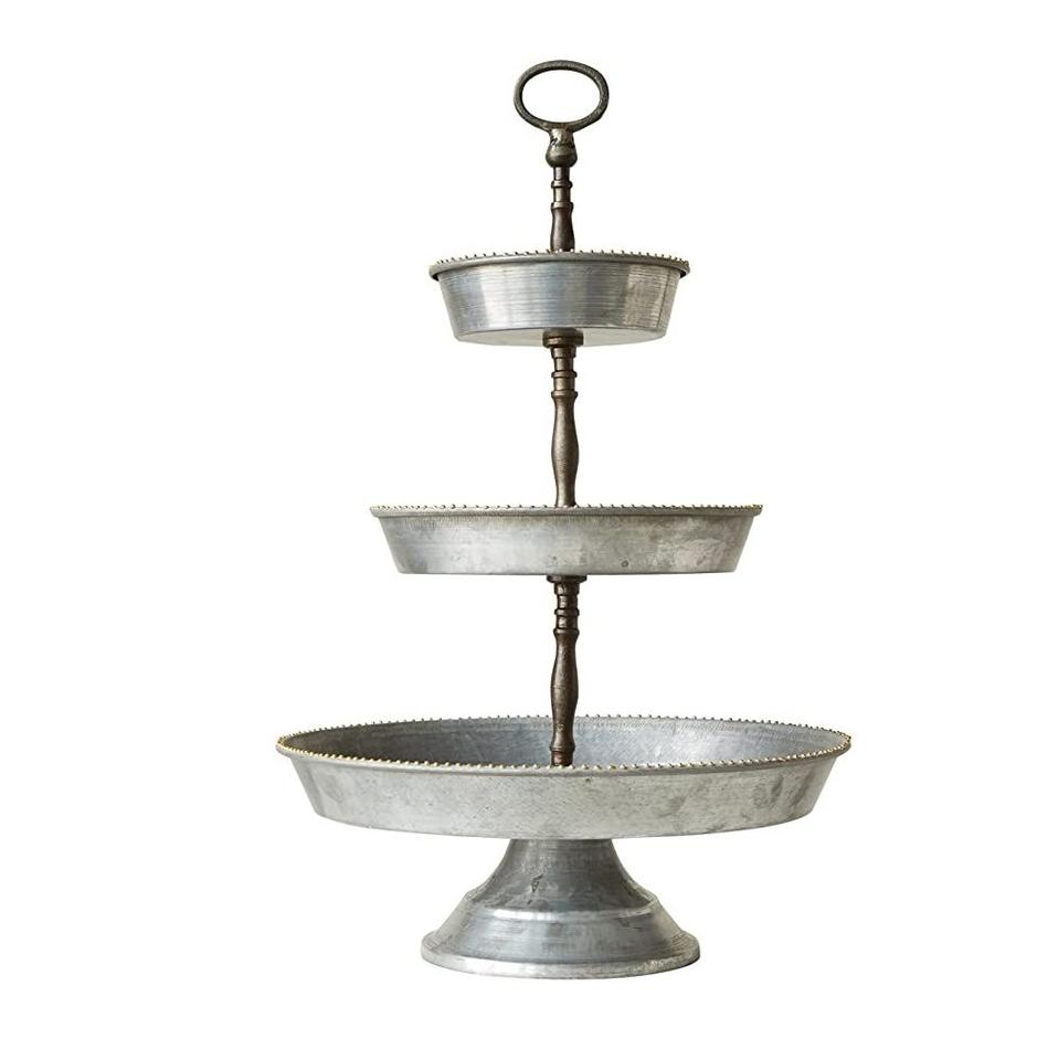 ขายส่งขาตั้งเค้กสองชั้นเหล็กชุบสังกะสีคุณภาพส่งออก ขอบหยักสไตล์วินเทจ ถาดเสิร์ฟโลหะสำหรับงานอีเว้นท์ ราคาถูก