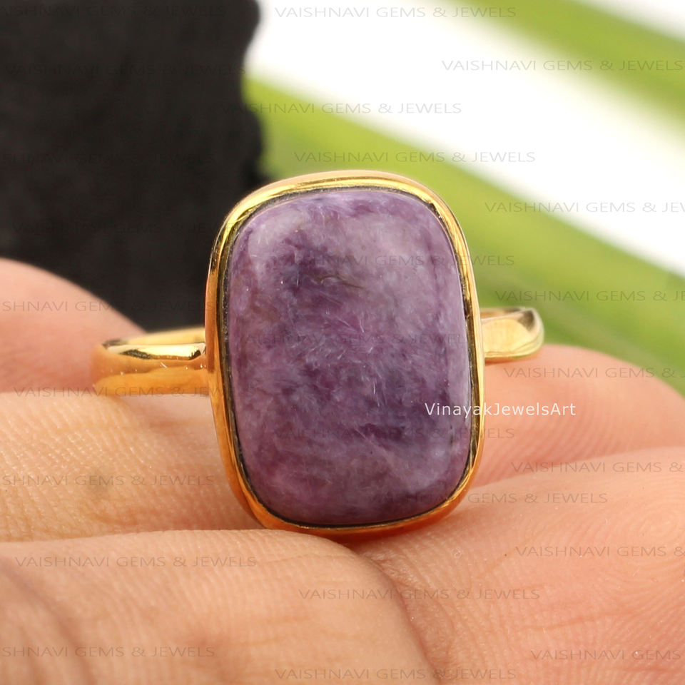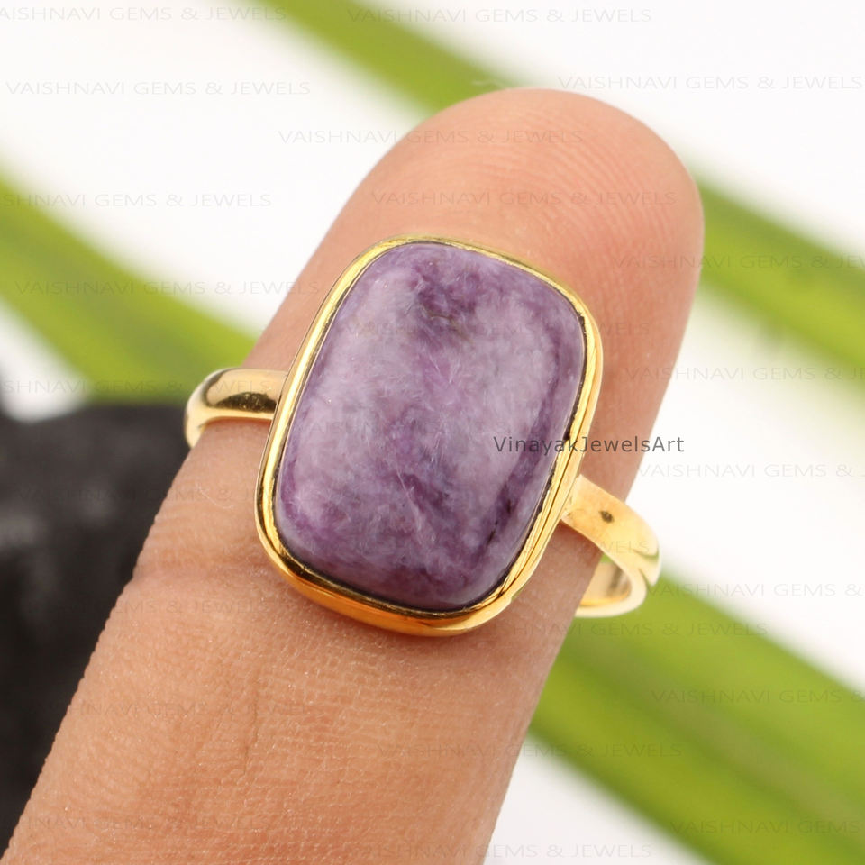 หมอนชาโรไรต์ธรรมชาติสีม่วงขนาด10X14มม. 925กรอบสีเงินสเตอร์ลิงประดับทอง18K