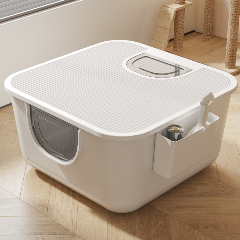 กระบะทรายแมวขนาดใหญ่พิเศษแบบกึ่งปิด ป้องกันการกระเด็น ผลิตจากพลาสติก ความจุสูง ทำความสะอาดง่าย เป็นมิตรกับสิ่งแวดล้อม
