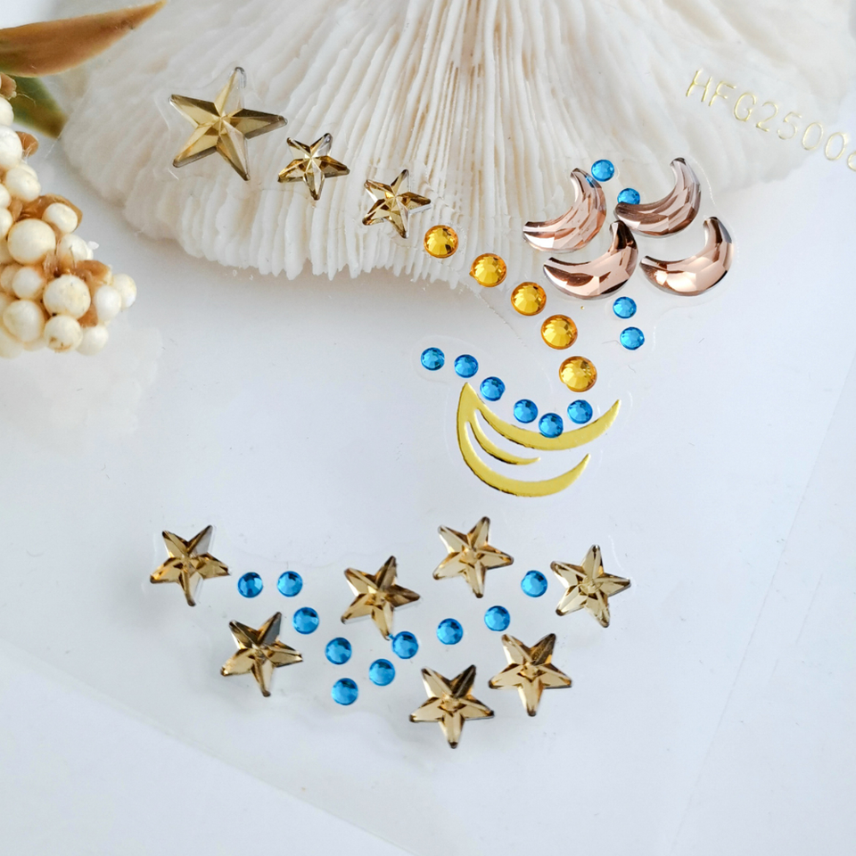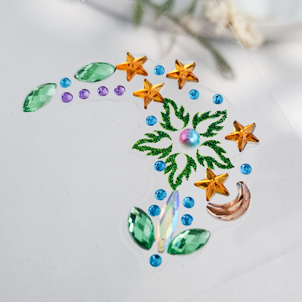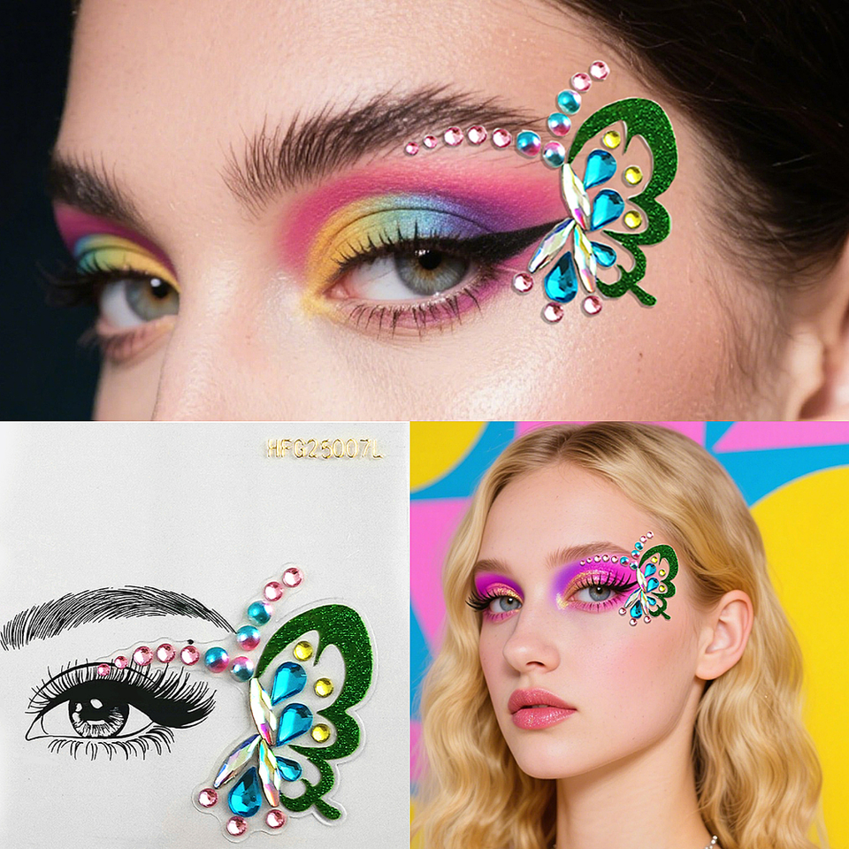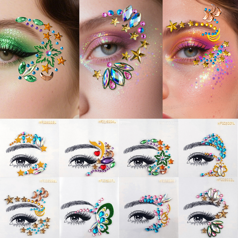 สติ๊กเกอร์ติดตา แต่งหน้า ลายเพชร รูปพระจันทร์ ดาว ผีเสื้อ 3 มิติ ประดับเพชร สำหรับงานปาร์ตี้ งานแสดงบนเวที สติ๊กเกอร์ลายสัก