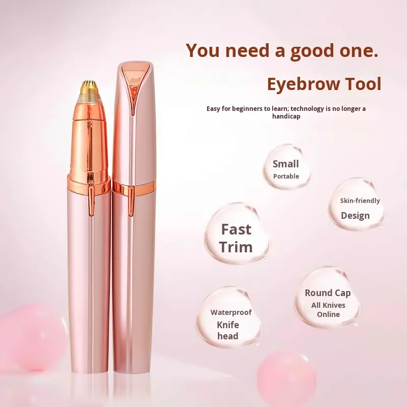เครื่องมือตัดแต่งคิ้วสำหรับมือใหม่ แบบอัตโนมัติ พร้อมแปรงโกนขนจมูกและที่ขูด ใช้แบตเตอรี่