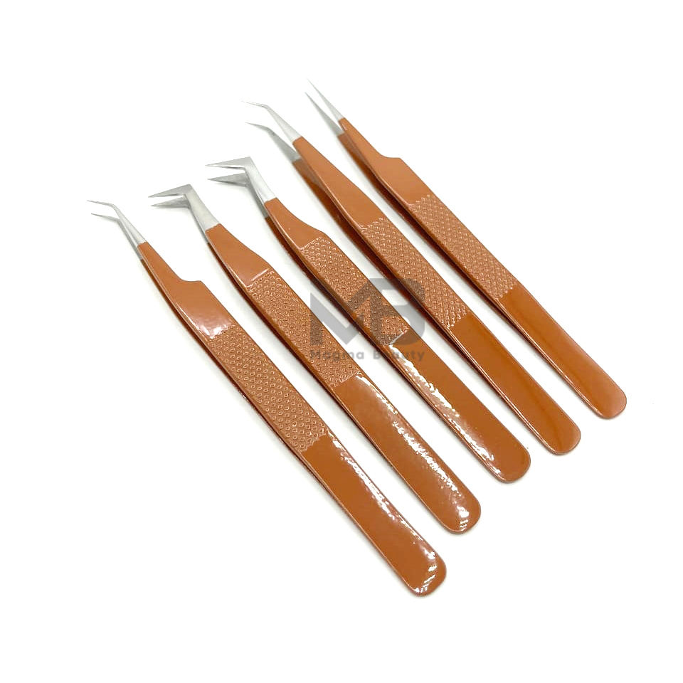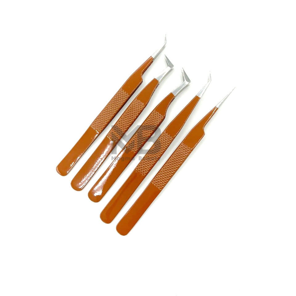 แหนบต่อขนตาสแตนเลสแบบญี่ปุ่นปลายสีเงินเคลือบน้ำตาลใหม่