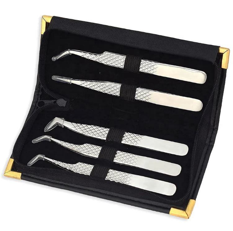 ชุดแหนบต่อขนตาปลอมแบบโค้งและตรง พร้อมกล่องหนัง PU อุปกรณ์เสริมความงาม ขายส่ง