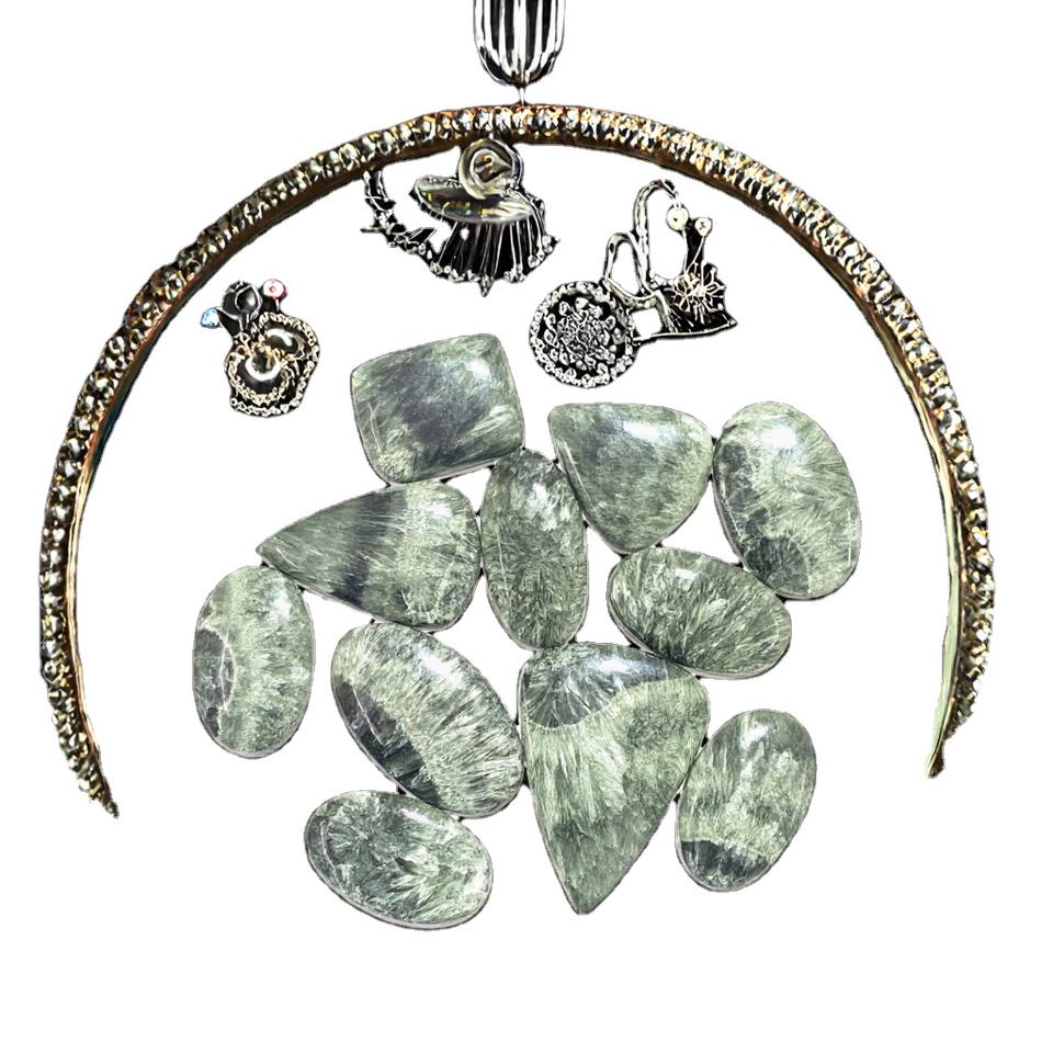 แหวน DIY ทำมือจากพลอยธรรมชาติเซราฟินไนต์สีเขียวทรงรี ขนาด 20-45 มม. น้ำหนัก 8-12 กรัม ได้รับการรับรองจาก IGI ขายส่งโดย FAAIMI