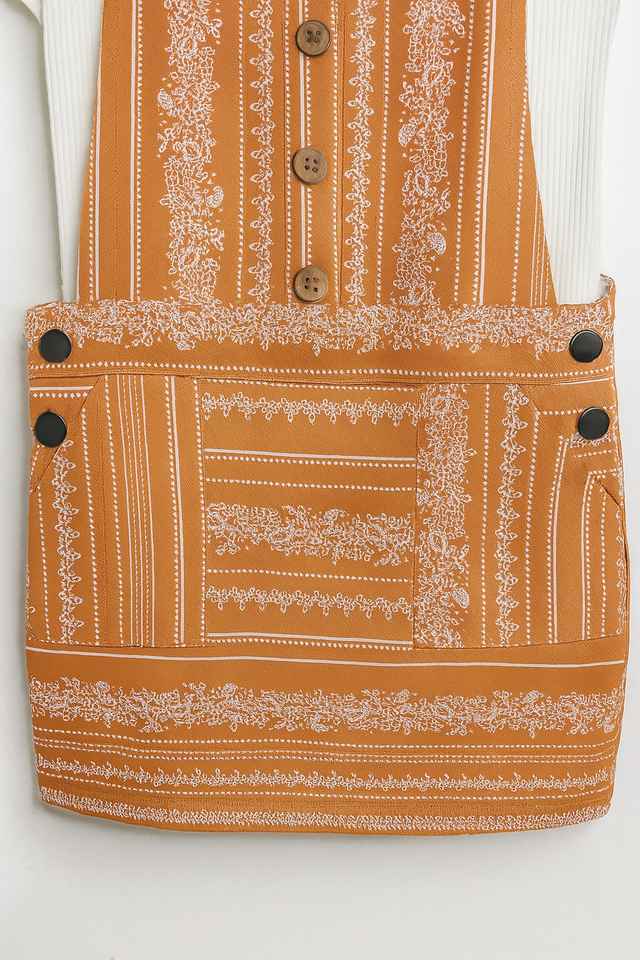 จั๊มสูทลำลองผู้หญิงสีส้มถักนิตติ้ง ตกแต่งกระดุมลายดอกไม้เล็กสีขาว ระบายอากาศได้ดี ขายส่งแบบ FOB