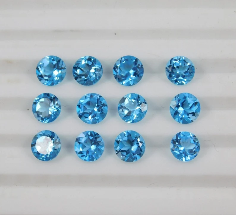 พลอยอัญมณีธรรมชาติสำหรับสวิสสีฟ้าบุษราคัมทรงกลมรูปวงรีขนาด6x6มม. เจียระไนจากผู้ผลิตอินเดียธรรมชาติ