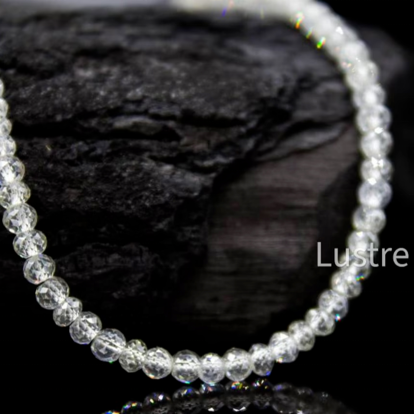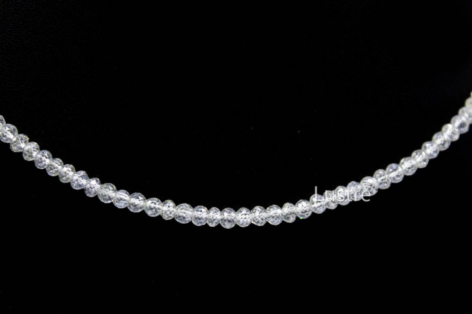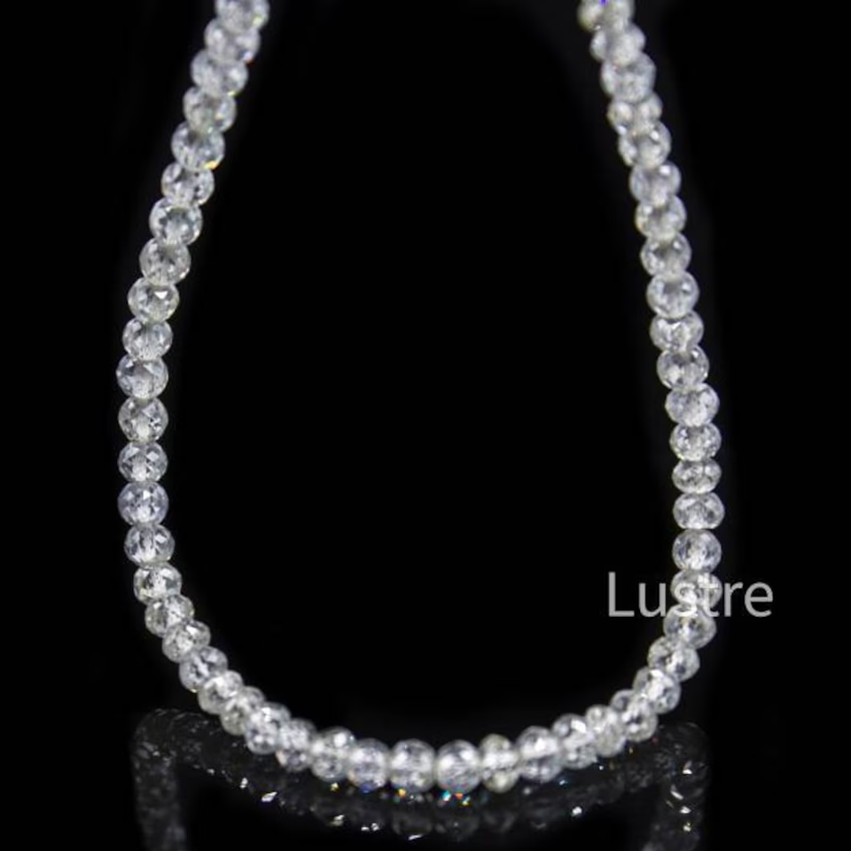 ลูกปัดเพชรเม็ดกลมเจียระไนแบบธรรมชาติสีขาวใสสำหรับทำเครื่องประดับขนาด15นิ้ว
