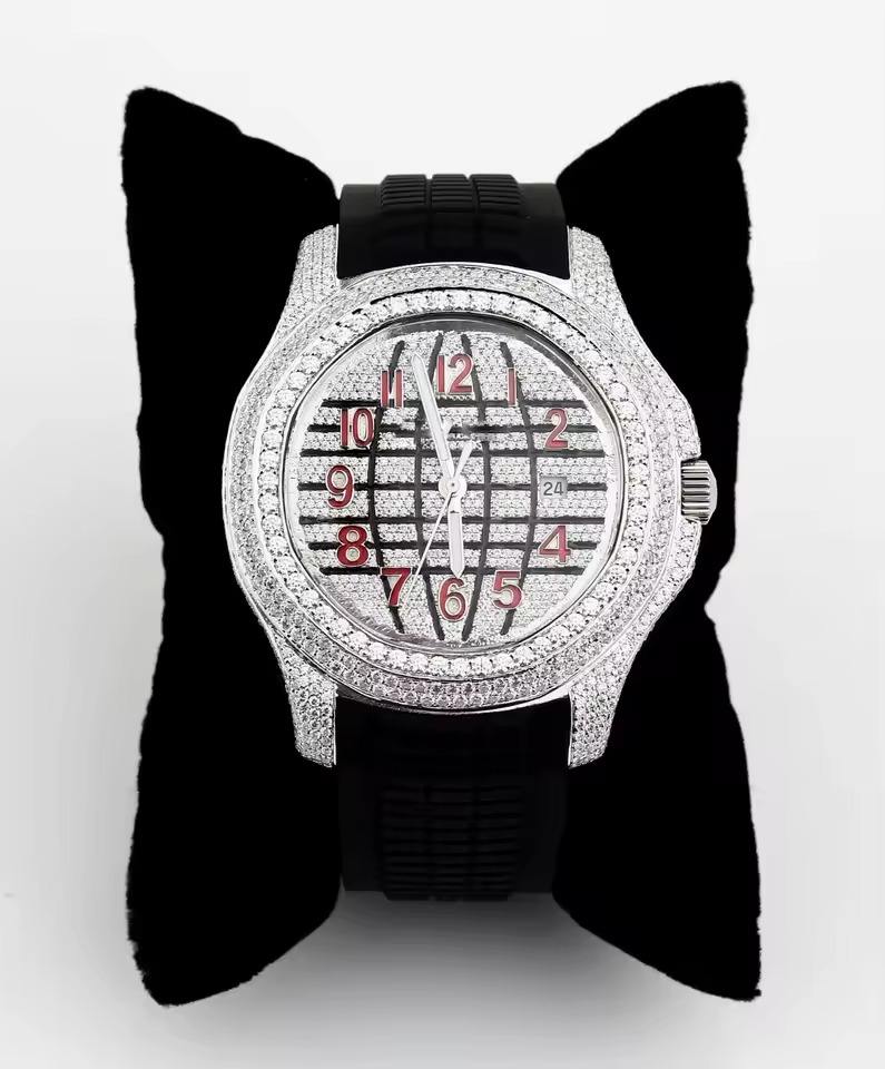 นาฬิกาข้อมือประดับเพชรโมอิสซาไนต์สีดำจากโรงงานขายส่ง พร้อมนาฬิกาโมอิสซาไนต์แบบฝังเพชรสำหรับเป็นของขวัญ ผ่านการทดสอบเพชร