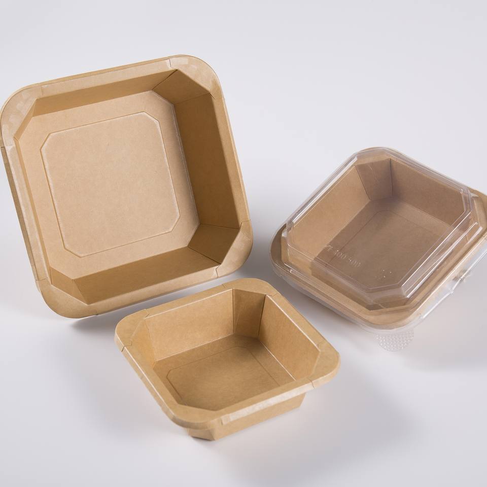 โรงงานขายส่ง กล่องอาหารกระดาษคราฟท์ทรงกลมแบบย่อยสลายได้ตามธรรมชาติ กล่องสลัดแบบใช้แล้วทิ้ง กล่องแปดเหลี่ยมพร้อมฝาปิด