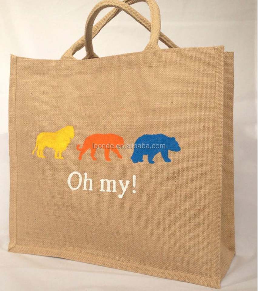 กระเป๋าผ้าปอกระเจาลายทางพร้อมที่จับผ้าฝ้ายสำหรับบรรจุโลโก้และแบบเจาะรูพิมพ์ลายได้ตามต้องการ