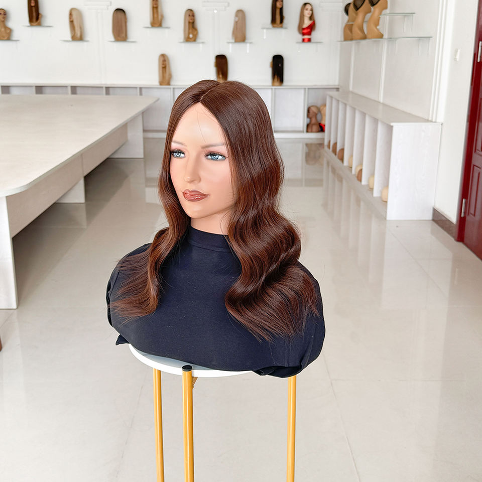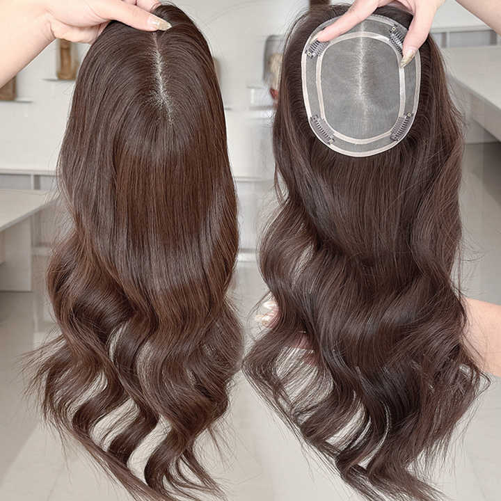 โรงงานขายส่งท็อปเปอร์ผมแท้สีน้ำตาลเข้มแบบยุโรป 5x6 ฐานโมโน สำหรับผู้หญิง พร้อมส่ง