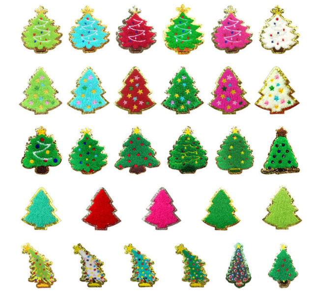 โรงงานขายส่งอุปกรณ์ตกแต่งเสื้อผ้า ป้ายติดเสื้อผ้ารูปต้นไม้ขนาดเล็ก รีดติดได้ตลอดเวลา ป้ายเชนิลล์แบบกำหนดเองสำหรับเสื้อฮู้ดดี้