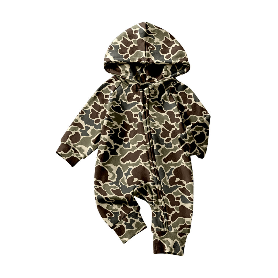 Wholesale Factory High Quality Baby Boys Spring Fall Clothing Cute Infant Hunting Season Brown Camouflage Print Hooded Romper