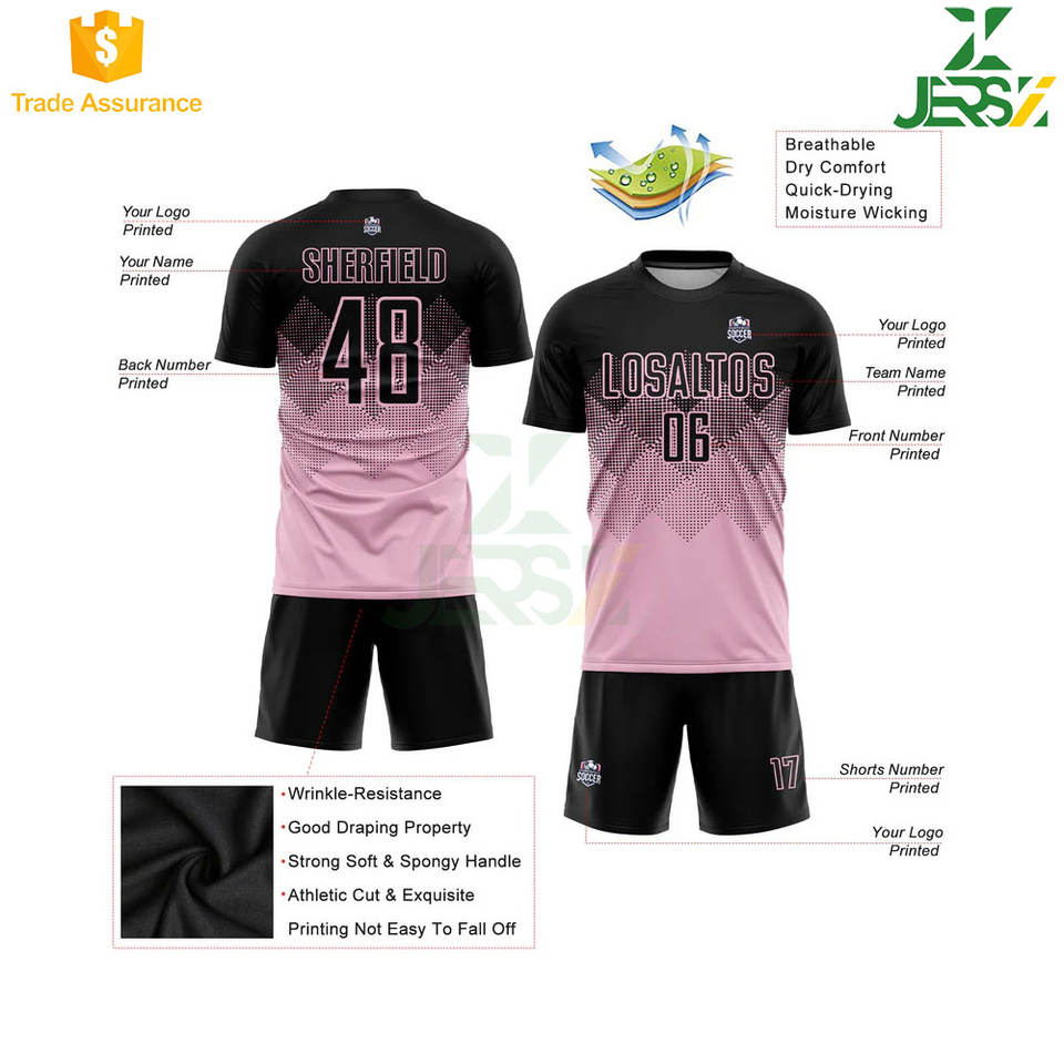 ชุดยูนิฟอร์มฟุตบอลพิมพ์ลายทีมฟุตบอลตามสั่ง ผลิตจากโรงงานขายส่ง ผ้าโพลีเอสเตอร์ 100% พิมพ์ลายด้วยความร้อน