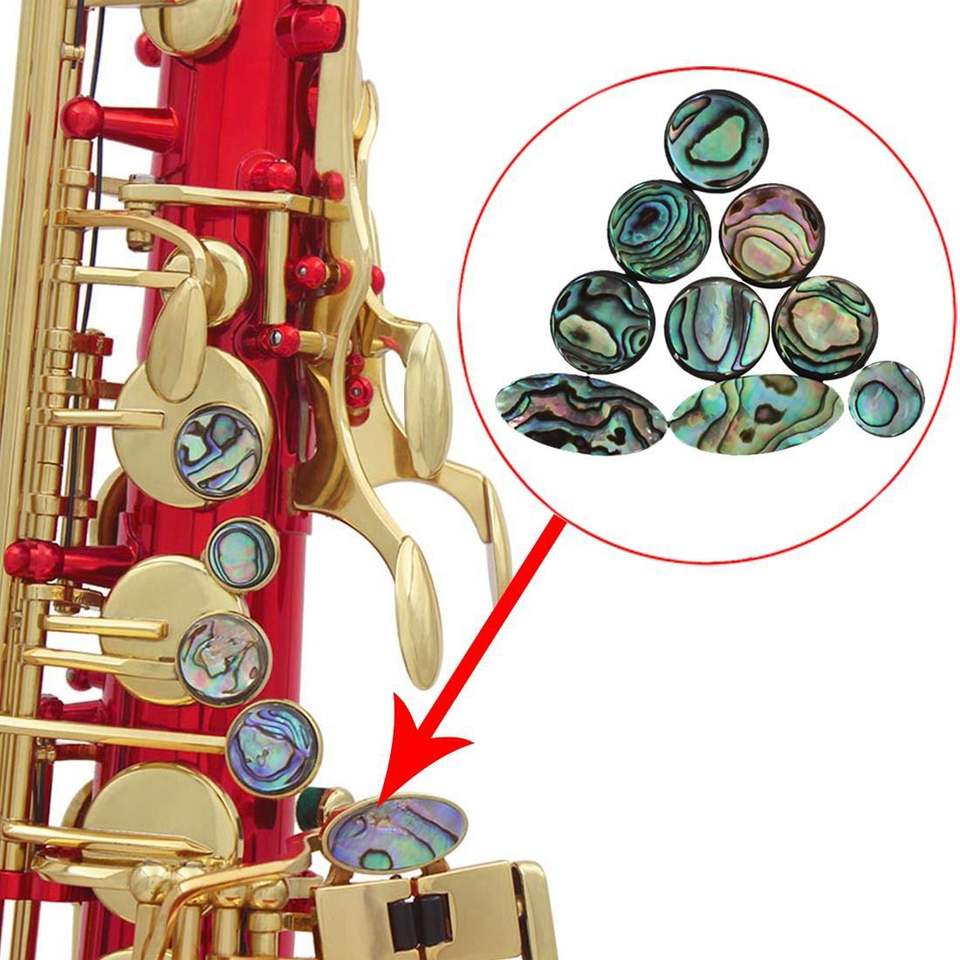ปุ่มกดแซกโซโฟนเปลือกหอยอะบาโลน 9 ชิ้น ผลิตจากโรงงานขายส่ง ให้ความรู้สึกสบายมือ อุปกรณ์เสริมแซกโซโฟน