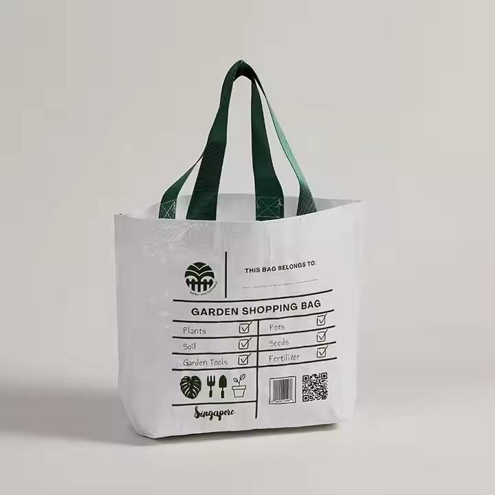 ถุงผ้าไนลอน PP ถุงช้อปปิ้งแบบถักพร้อมที่จับคู่สำหรับใส่โลโก้ได้ตามต้องการ