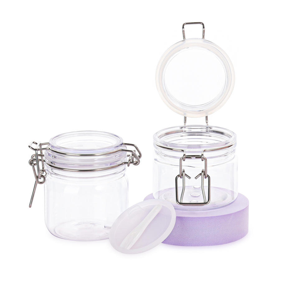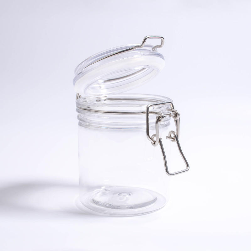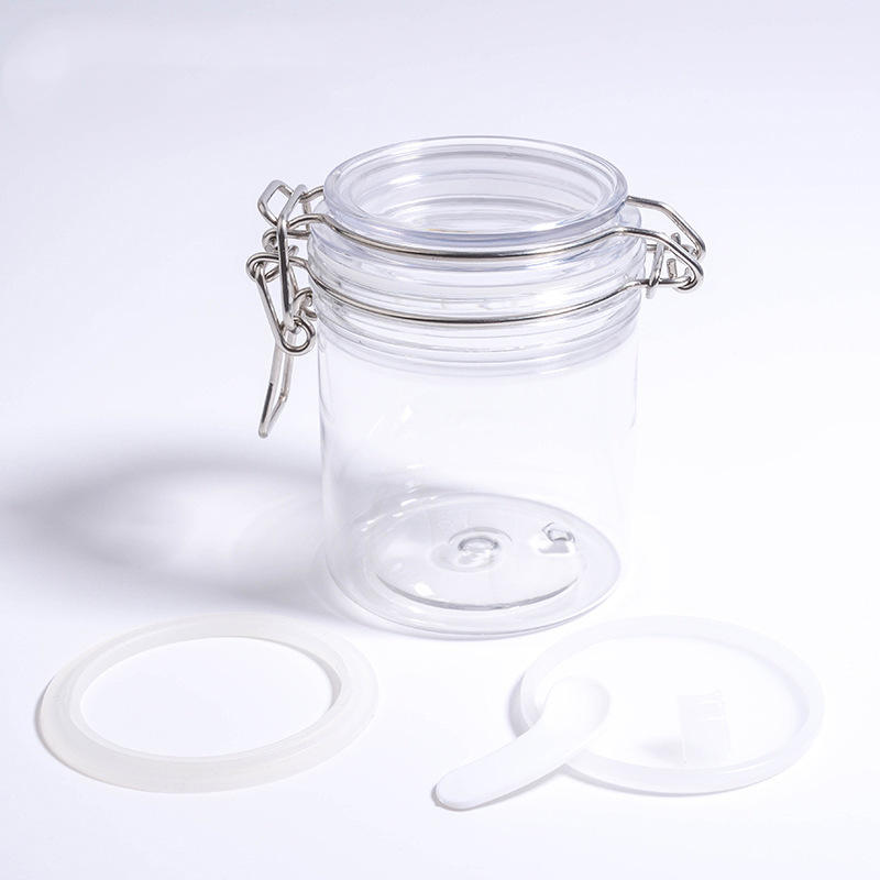 เหยือกพลาสติกใสขนาด300มล. สำหรับเก็บน้ำผึ้งแยมลูกอมพร้อมฝาปิดด้านบนและคลิปโลหะ