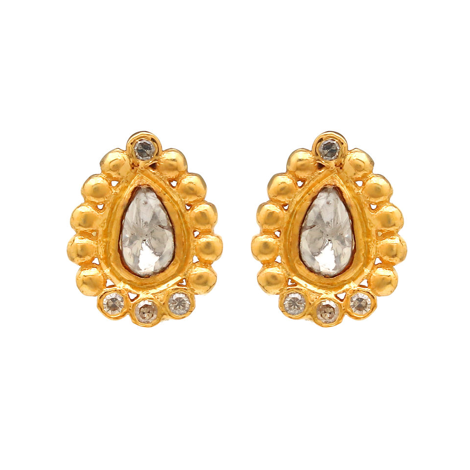 ต่างหูเม็ดเดี่ยวประดับเพชรเม็ดเล็กสีเงินสเตอริง925ชุบทองเหมาะกับชายและหญิง