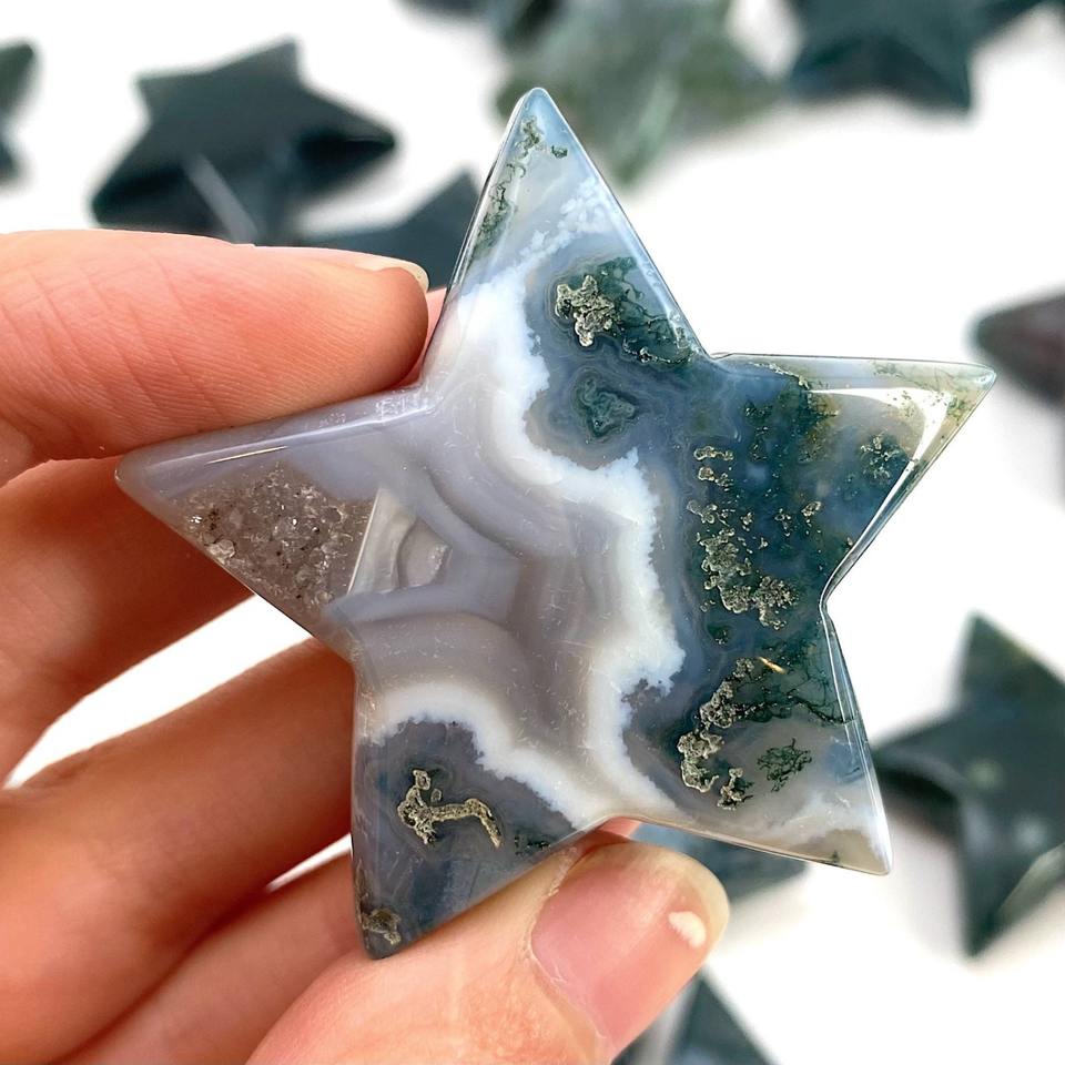 ราคาโรงงานขายส่ง หินคริสตัลรูปดาวมอสอาเกตสไตล์โบฮีเมียน แฟชั่นทันสมัยสำหรับของตกแต่งบ้านสุดพิเศษและของขวัญวันหยุด