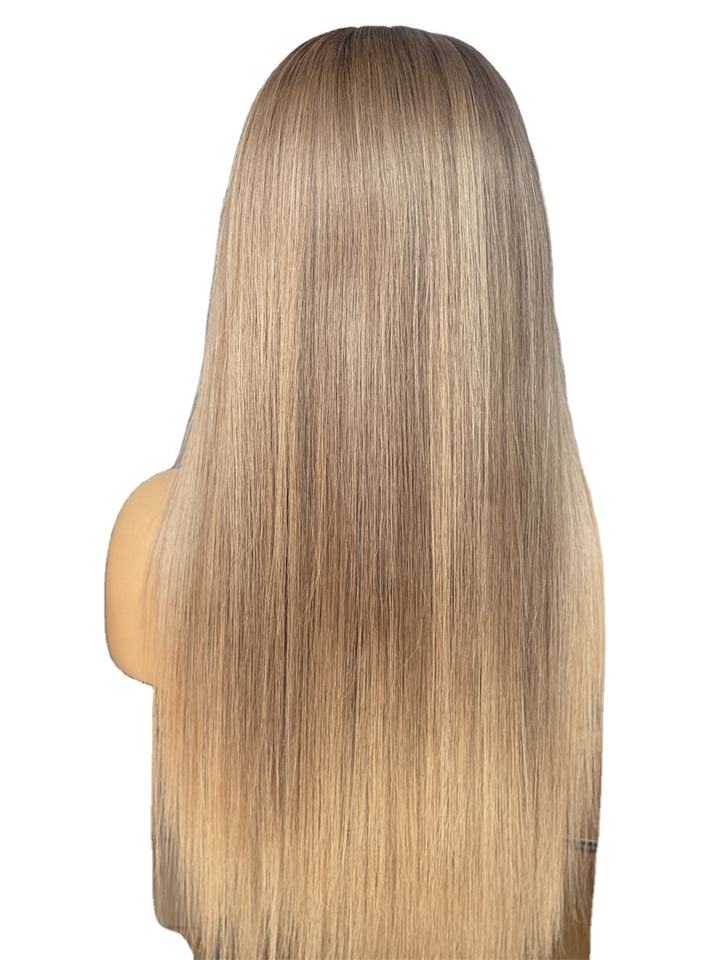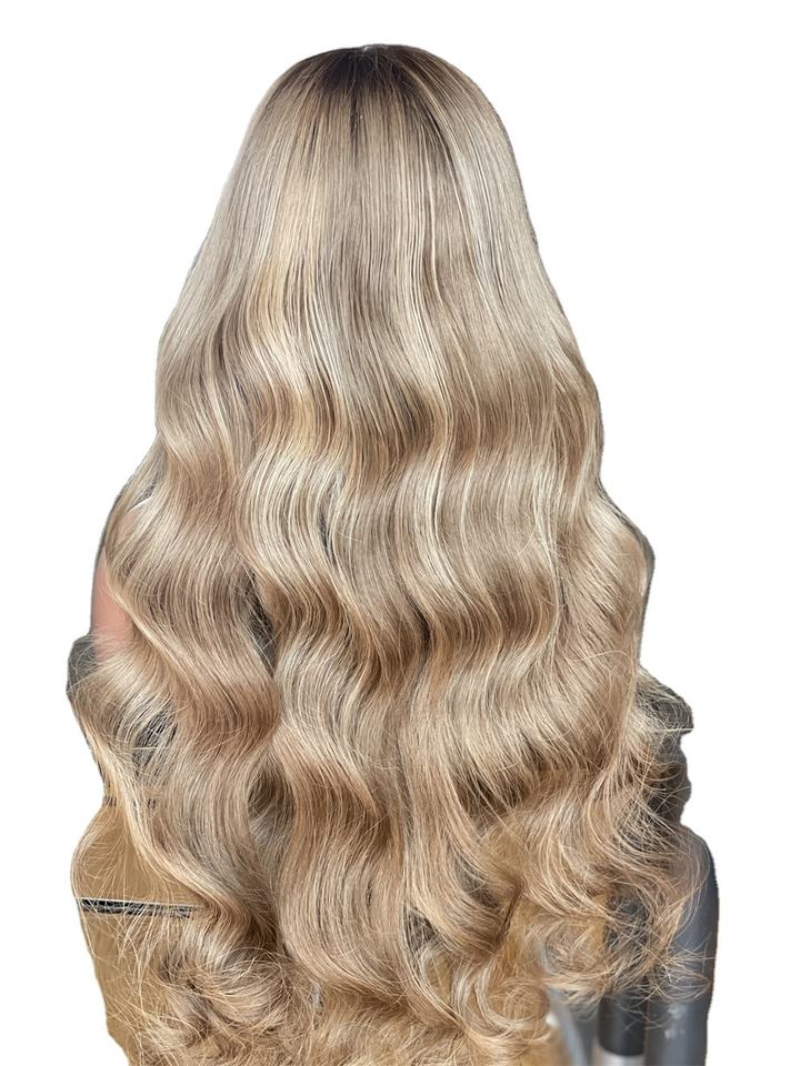 วิกผมคนบริสุทธิ์แบบยุโรปสีบลอนด์ลูกไม้ใสสำหรับร้านเสริมสวย